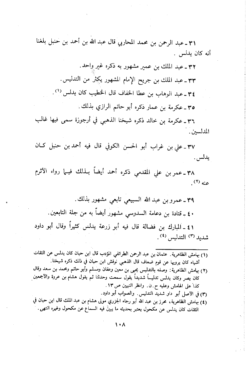 31 - عبد الرحمن بن محمد المحاربي قال عبد الله بن أحمد بن حنبل بلغنا أنه كان يدلس