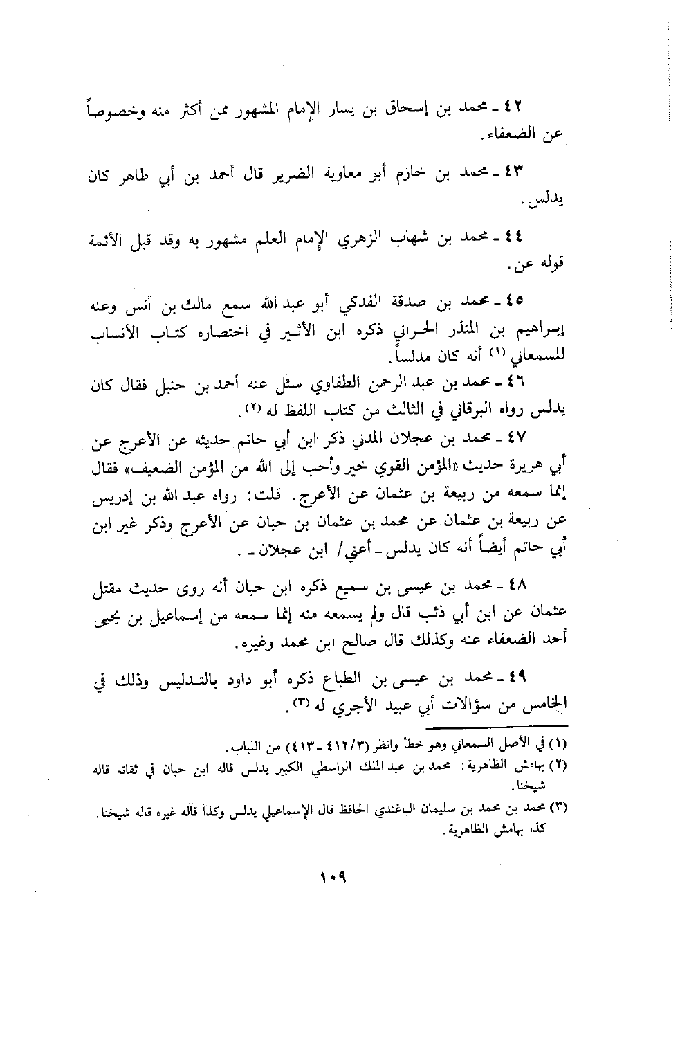 46 - محمد بن عبد الرحمن الطفاوي سئل عنه أحمد بن حنبل فقال كان يدلس رواه البرقاني في الثالث من كتاب اللفظ له