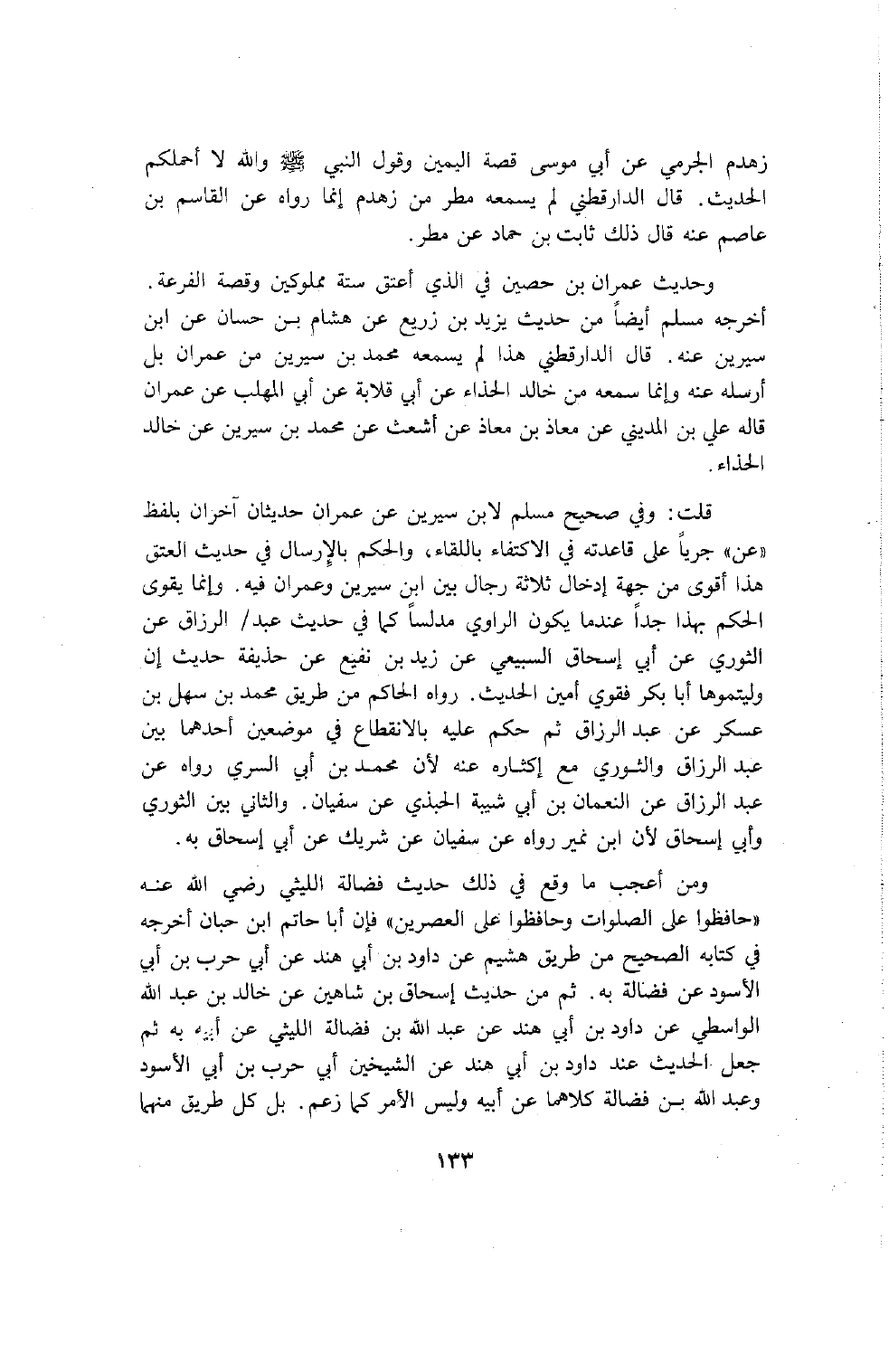 وحديث عمران بن حصين في الذي أعتق ستة مملوكين وقصة الفرعة أخرجه مسلم ايضا من حديث يزيد بن زريع عن هشام بن حسان عن ابن سيرين عنه قال الدارقطني هذا لم يسمعه محمد بن سيرين من عمران بل أرسله عنه وإنما سمعه من خالد الحذاء عن أبي قلابة عن أبي المهلب عن عمران قاله علي بن المديني عن معاذ بن معاذ عن أشعث عن محمد بن سيرين عن خالد الحذاء