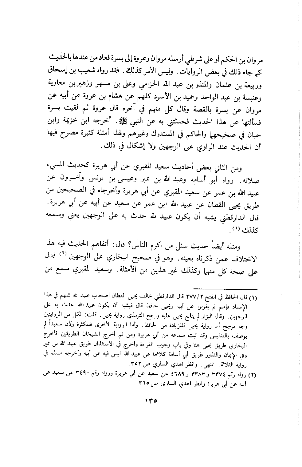 مروان بن الحكم أو على شرطي أرسله مروان وعروة إلى بسرة فعاد من عندها بالحديث كما جاء ذلك في بعض الروايات وليس الأمر كذلك فقد رواة شعيب بن إسحاق وربيعة بن عثمان والمنذر بن عبد الله الحزامي وعلي بن مسهر وزهير بن معاوية وعنبسة بن عبد الواحد وحميد بن الأسود كلهم عن هشام بن عروة عن أبيه عن مروان عن بسرة بالقصة وقال كل منهم في آخره قال عروة ثم لقيت بسرة فسألتها عن هذا الحديث فحدثتني به عن النبي صلى الله عليه وسلم أخرجه ابن خزيمة وابن حبان في صحيحهما والحاكم في المستدرك وغيرهم ولهذا أمثلة كثيرة مصرح فيها أن الحديث عند الراوي على الوجهين ولا إشكال في ذلك