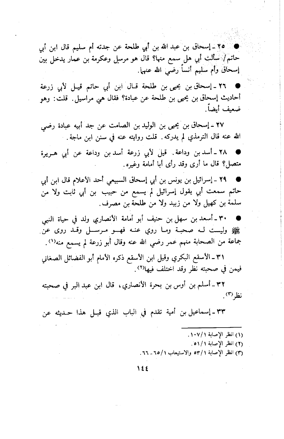 25 - إسحاق بن عبد الله بن أبي طلحة عن جدته أم سليم قال بن أبي حاتم سألت أبي هل سمع منها قال هو مرسل وعكرمة بن عمار يدخل بين إسحاق وأم سليم أنسا رضي الله عنهما