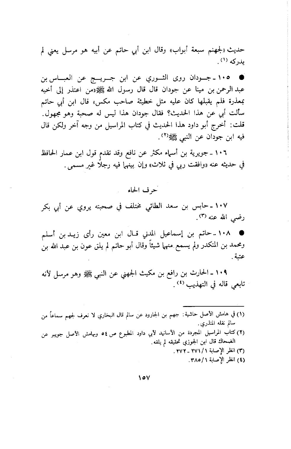 109 - الحارث بن رافع بن مكيث الجهني عن النبي صلى الله عليه وسلم وهو مرسل لأنه تابعي قاله في التهذيب