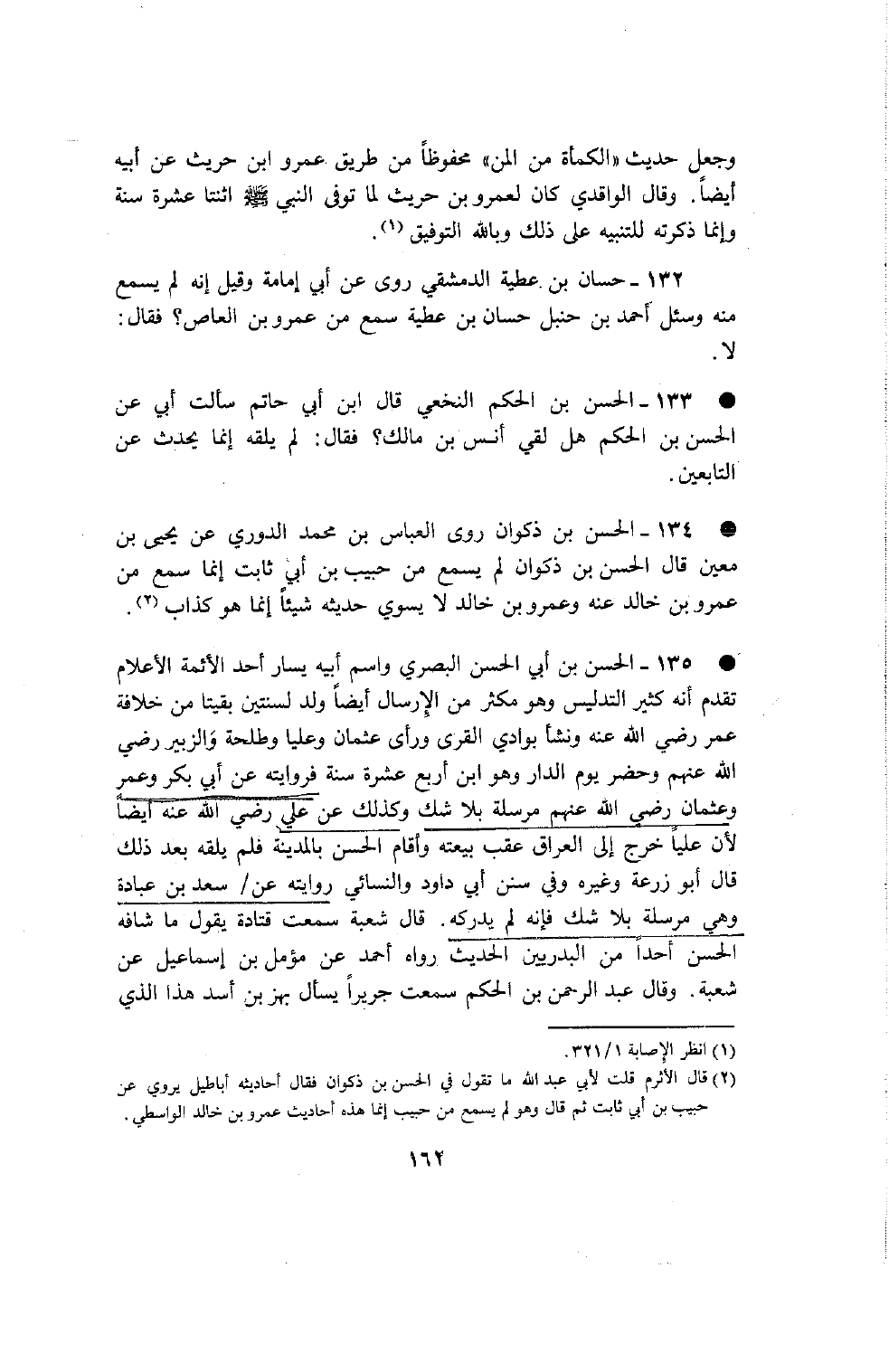 132 - حسان بن عطية الدمشقي روى عن أبي إمامة وقيل إنه لم يسمع منه وسئل أحمد بن حنبل حسان بن عطية سمع من عمرو بن العاص فقال لا