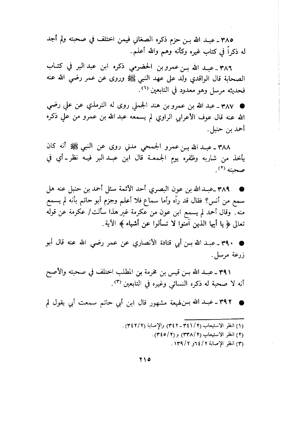 385 - عبد الله بن حزم ذكره الصغاني فيمن اختلف في صحبته ولم أجد له ذكرا في كتاب غيره وكأنه وهم والله أعلم