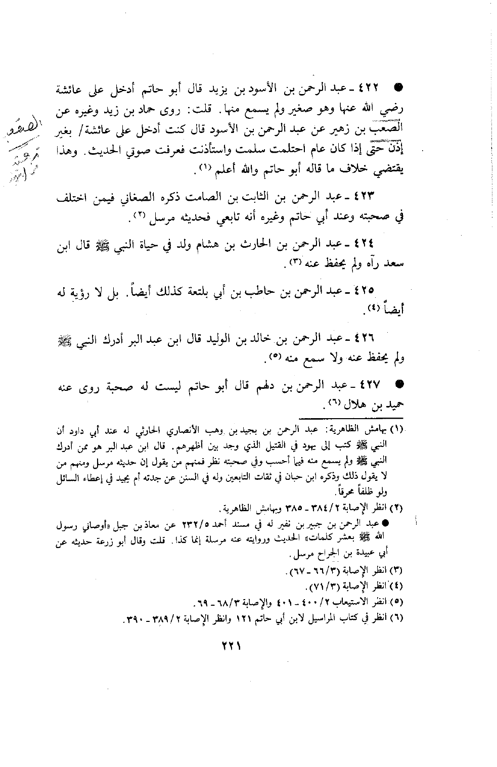 426 - عبد الرحمن بن خالد بن الوليد قال بن عبد البر أدرك النبي صلى الله عليه وسلم ولم يحفظ عنه ولا سمع منه