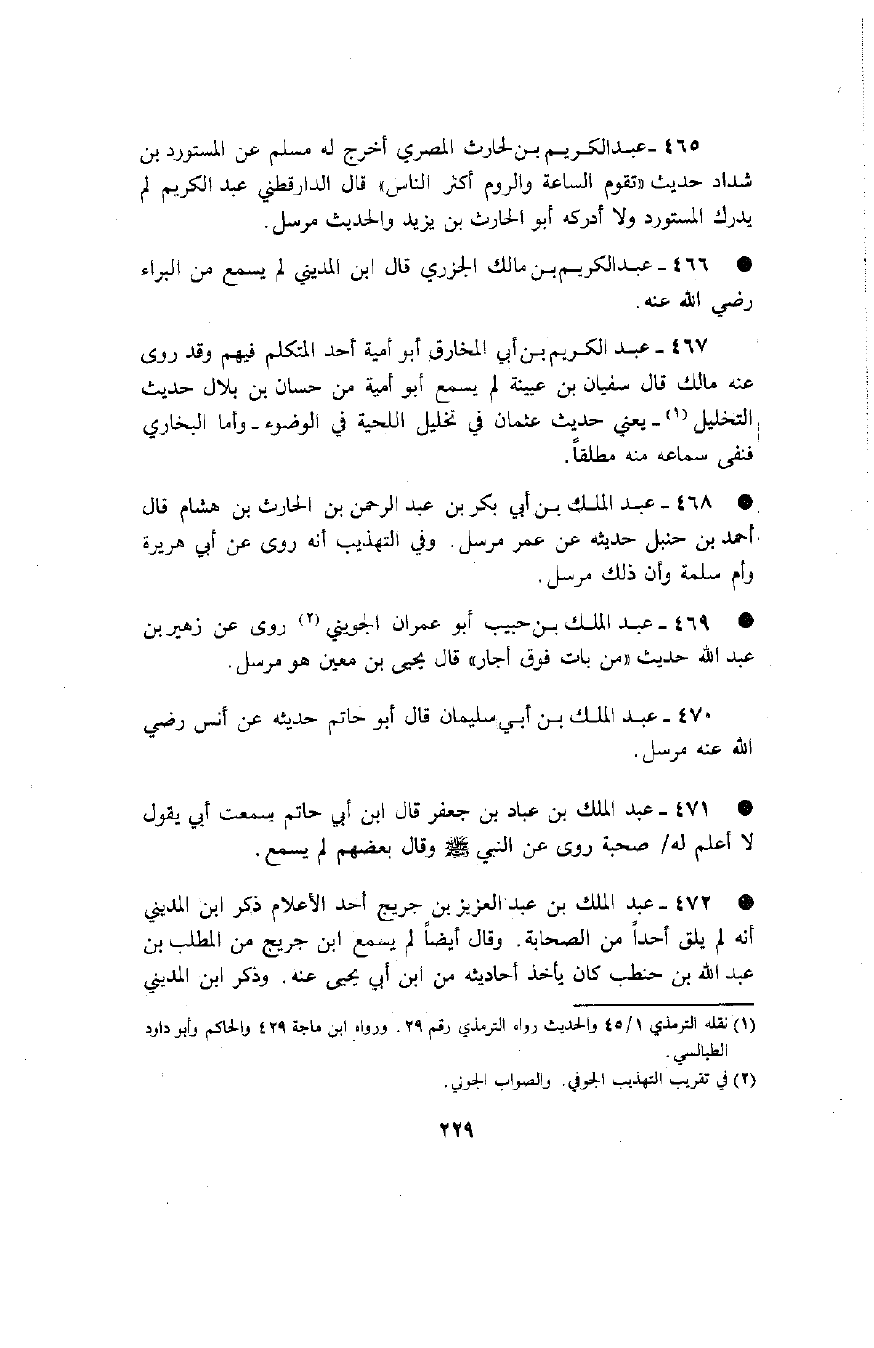 469 - عبد الملك بن حبيب أبو عمران الجويني روى عن زهير بن عبد الله حديث من بات فوق أجار قال يحيى بن معين هو مرسل