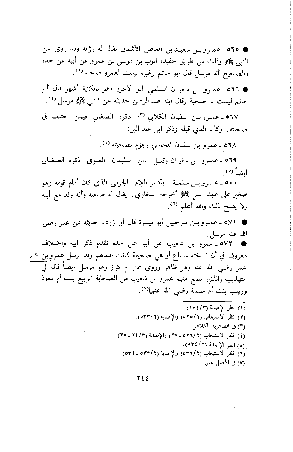 565 - عمرو بن سعيد بن العاص الأشدق يقال له رؤية وقد روى عن النبي صلى الله عليه وسلم وذلك من طريق حفيده أيوب بن موسى بن عمرو عن أبيه عن جده والصحيح أنه مرسل قال أبو حاتم وغيره ليست لعمرو صحبة