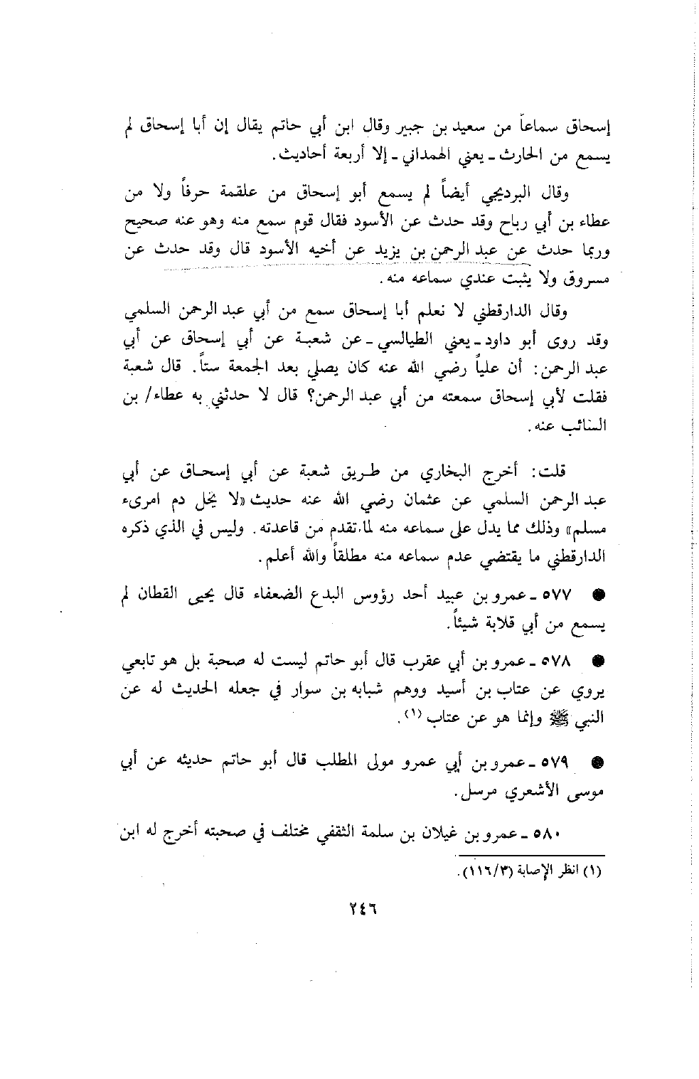 578 - عمرو بن أبي عقرب قال أبو حاتم ليست له صحبة بل هو تابعي يروي عن عتاب بن أسيد ووهم شبابة بن سوار في جعله الحديث له عن النبي صلى الله عليه وسلم وإنما هو عن عتاب