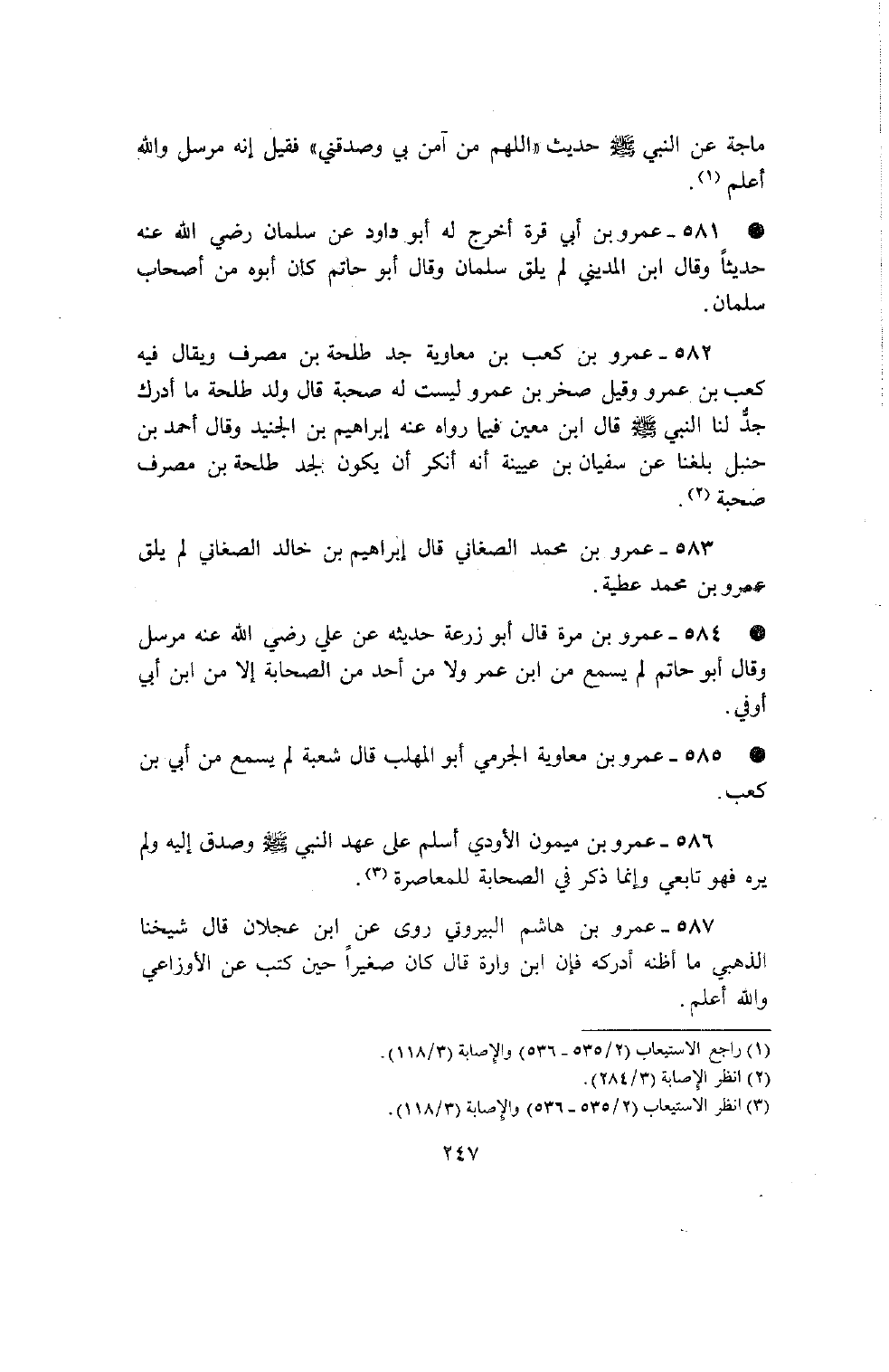 586 - عمرو بن ميمون الأودي أسلم على عهد النبي صلى الله عليه وسلم وصدق إليه ولم يره فهو تابعي وإنما ذكر في الصحابة للمعاصرة