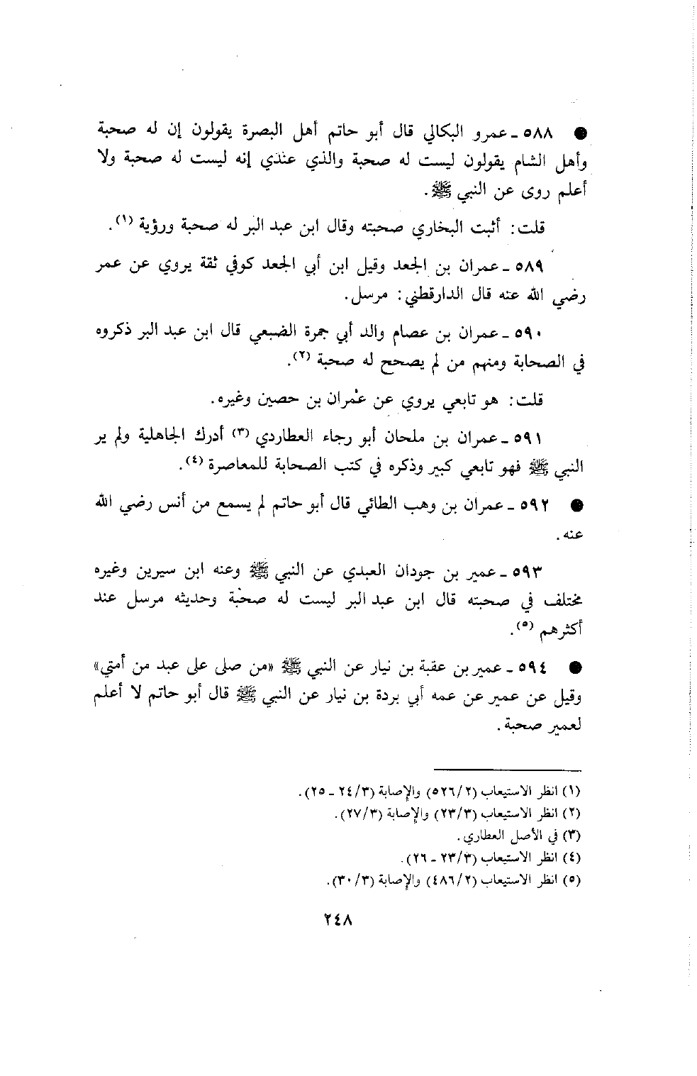 590 - عمران بن عصام والد أبي جمرة الضبعي قال بن عبد البر ذكروه في الصحابة ومنهم من لم يصحح له صحبة قلت هو تابعي يروي عن عمران بن حصين وغيره