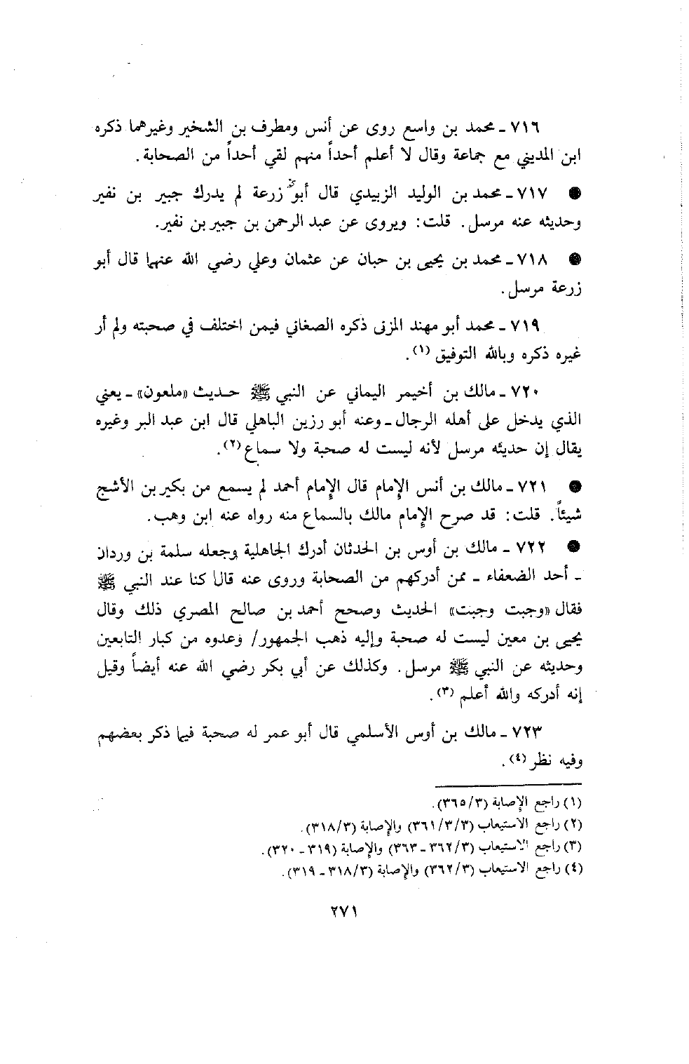716 - محمد بن واسع روى عن أنس ومطرف بن الشخير وغيرهما ذكره بن المديني مع جماعة وقال لا أعلم أحدا منهم لقي أحدا من الصحابة