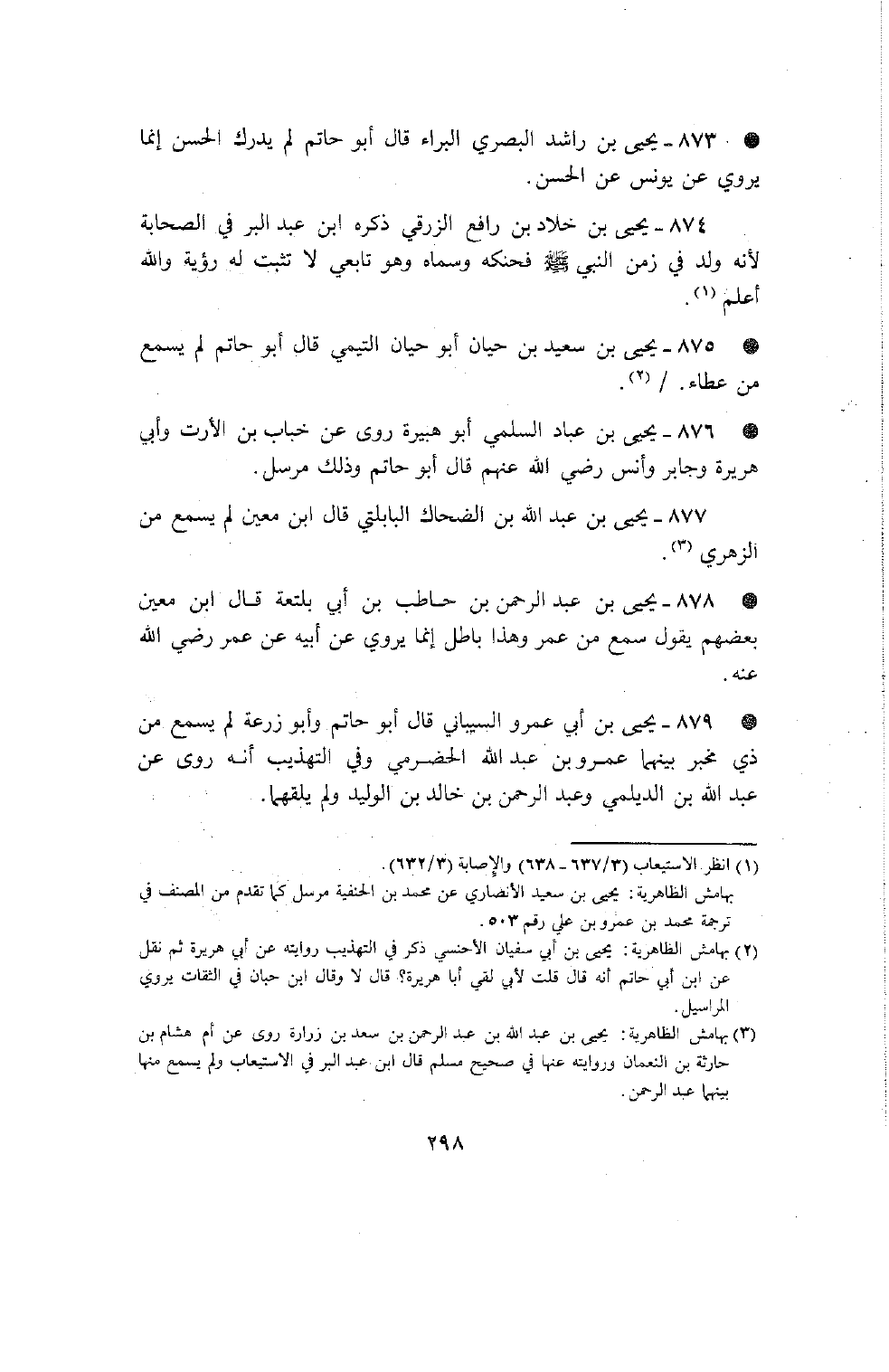 876 - يحيى بن عباد السلمي أبو هبيرة روى عن خباب بن الأرت وأبي هريرة وجابر وأنس رضي الله عنهم قال أبو حاتم وذلك مرسل