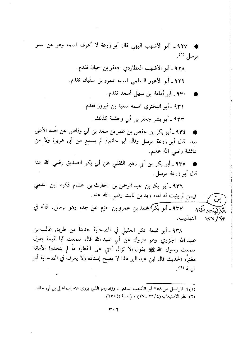 936 - أبو بكر بن عبد الرحمن بن الحارث بن هشام ذكره بن المديني فيمن لم يثبت له لقاء زيد بن ثابت رضي الله عنه