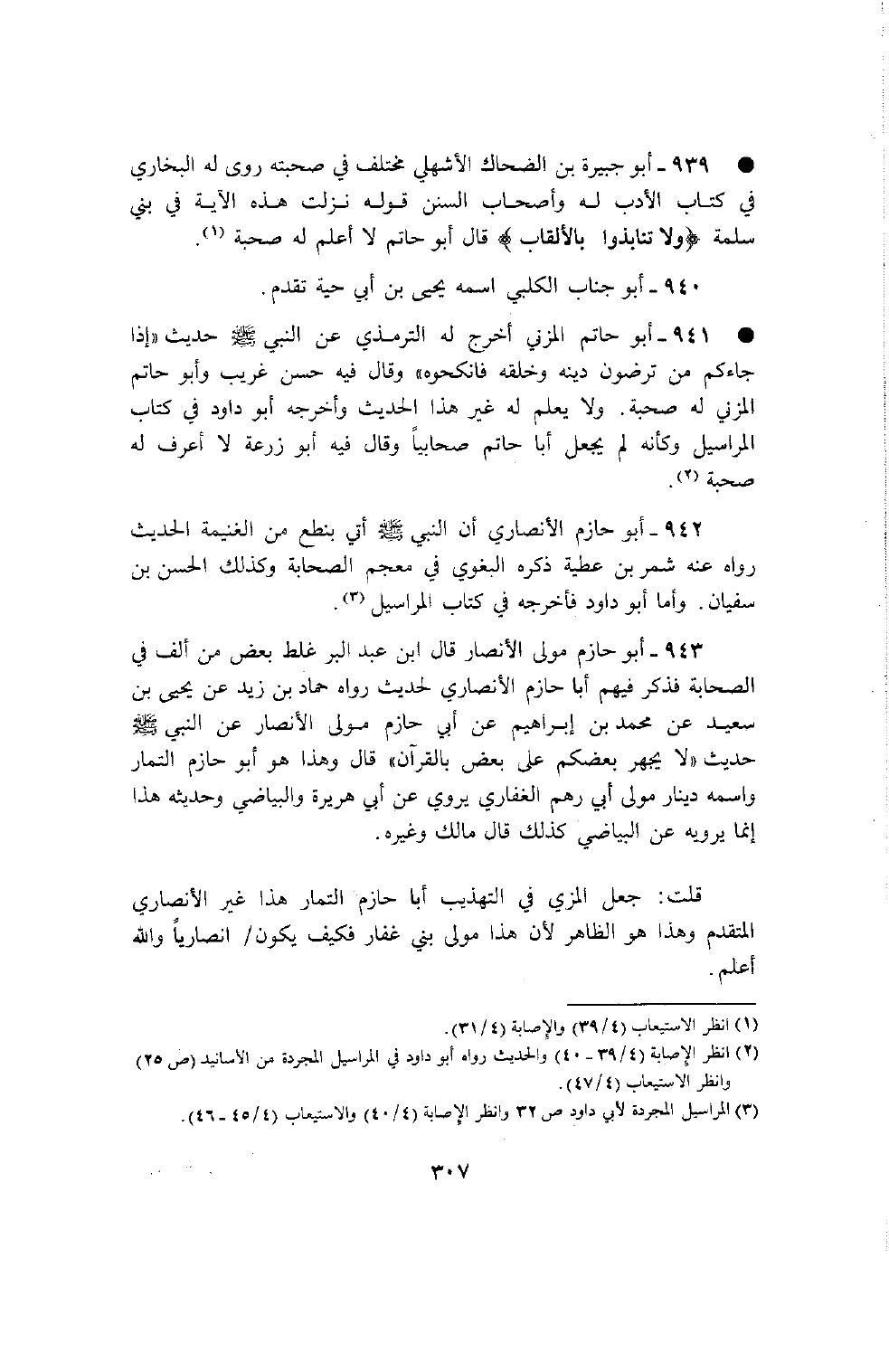 942 - أبو حازم الأنصاري أن النبي صلى الله عليه وسلم أتي بنطع من الغنيمة الحديث رواه عنه شمر بن عطية ذكره البغوي في معجم الصحابة وكذلك الحسن بن سفيان وأما أبو داود فأخرجه في كتاب المراسيل