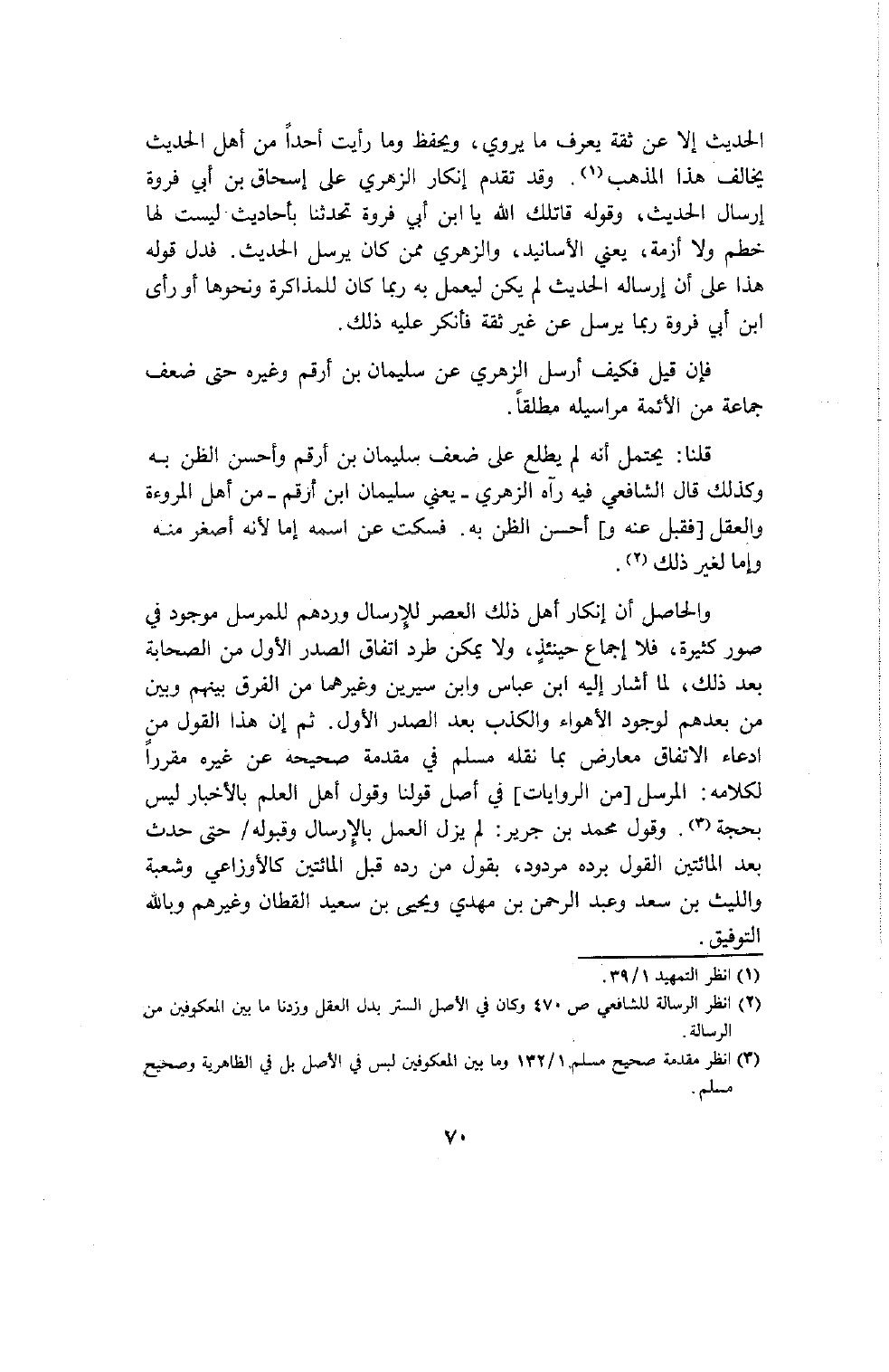 قالوا ومن الدليل على هذين الوجهين وأن الراوي الثقة كان لا يرسل الحديث إلا بعد صحته عنده ما جاء عن الأعمش قال قلت لإبراهيم النخعي إذا حدثتني فأسند فقال إذا قلت لك قال عبد الله فقد حدثني جماعة عنه وإذا قلت لك حدثني فلان عن عبد الله فهو الذي حدثني
