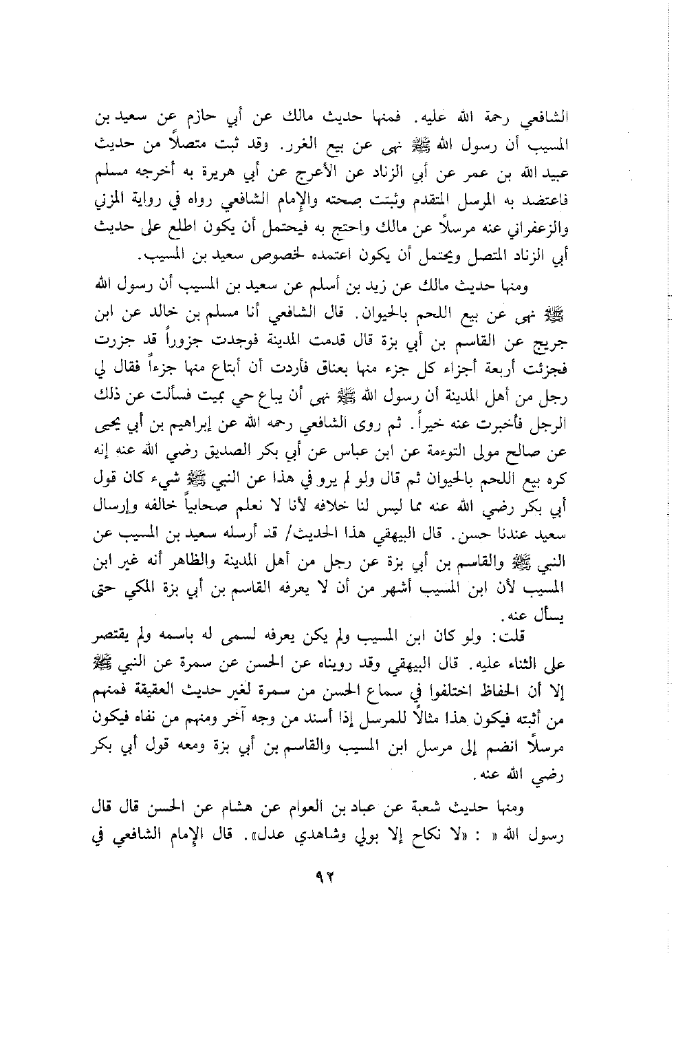 قلت وروي أيضا عن عمر وغيره من الصحابة رضي الله عنهم كما أشار إليه الإمام الشافعي والحديث بذكر الشاهدين قد روي متصلا عن النبي صلى الله عليه وسلم من طرق كثيرة في أكثرهم مقال وأجودها سندا ما رواه عيسى بن يونس عن ابن جريج عن سليمان بن موسى عن الزهري عن عروة عن عائشة رضي الله عنها قالت قال رسول الله صلى الله عليه وسلم أيما امرأة نكحت بغير إذن وليها وشاهدي عدل فنكاحها باطل الحديث بتمامة وفي رواية لا نكاح إلا بولي وشاهدي عدل رواه عن عيسى بن يونس أبو يوسف محمد بن أحمد بن الحجاج الرقي وهو ثقة قال فيه أبو علي النيسابوري هو من حفاظ أهل الجزيرة ومتقنيهم وسليمان بن عمر بن خالد الرقي وعبد الرحمن بن يونس وهذا في كتاب الثقات لابن حبان وقال أحمد بن حنبل في عبد الرحمن هذا ما علمت إلا خيرا ورواه محمد بن هارون الحضرمي عن عثمان بن عمر الرقي عن يحيى بن سعيد الأموي عن ابن جريج عن سليمان بن موسى كذلك أيضا ومع هذا فهو غريب لأن الأكثرين رووه عن ابن جريج بدون ذكر الشاهدين فإن صح ذلك فهو مثال للمرسل إذا أسند والله أعلم
