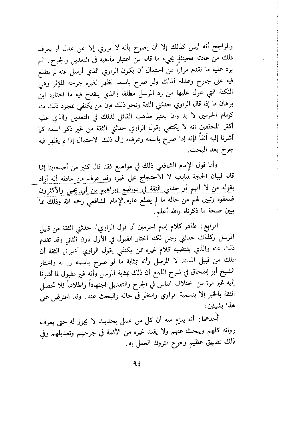 والجواب عن الأول أن الراوي إذا سمي باسمه فقد بعد عن التدليس فإن من كان من أهل زمن العامل بالخبر فالبحث عنه ممكن واستكشاف حاله متعين وإن كان متقدما ولم نكتف بظاهر الإسلام والستر على الراجح ووجدنا من عدله ولم نعثر فيه على جرح لغيره اكتفينا بذلك وحصل عليه الظن بقوله وإن وجدنا جرحا مؤثرا قدمناه على تعديله ولا يلزم من ذلك وجوب معرفته باطنا وأيضا فالعلماء مختلفون في الاكتفاء بالواحد في التعديل وفي أنه هل يحتاج فيه إلى ذكر السبب أم لا فمن يشترط ذلك أولا يكتفي بالواحد في التعديل لا يثبت الخبر عنده بقول الراوي وحده حدثني الثقة وأما على الراجح عند المحققين فالنكتة في عدم الاكتفاء بقوله حدثني الثقة ما قدمناه
