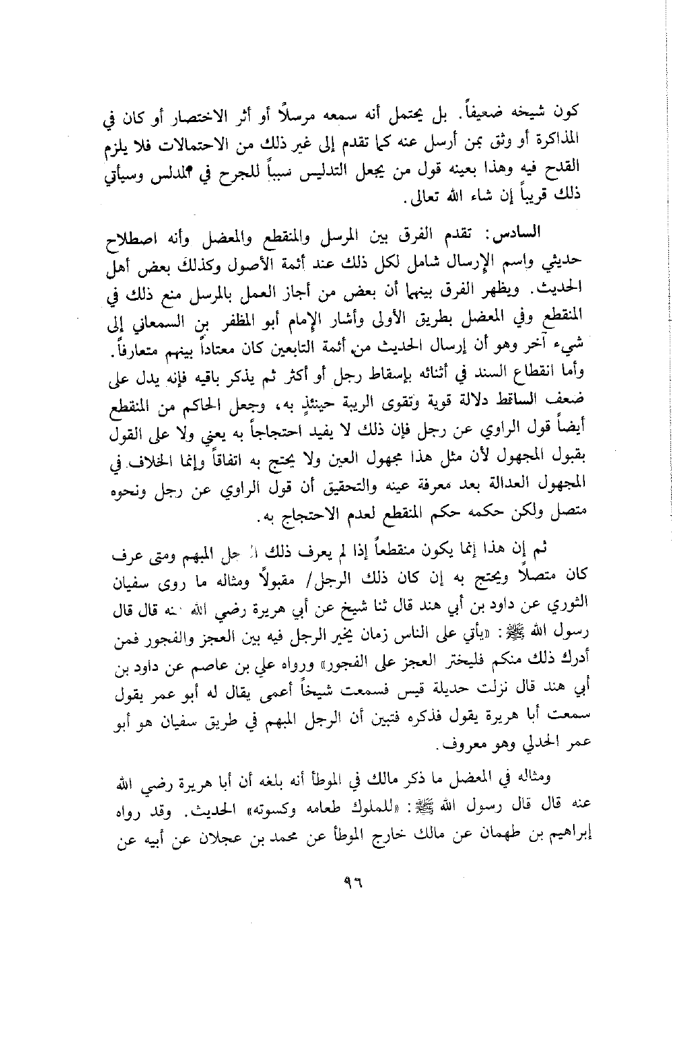 والقول الأول ضعيف لأن التدليس أصله التغطية والتلبيس وإنما يجيء ذلك فيما أطلقه الراوي عن شيخه بلفظ موهم للاتصال وهو لم يسمعه منه فأما إطلاقه الرواية عمن يعلم أنه لم يلقه أو لم يدركه أصلا فلا تدليس في هذا يوهم الاتصال وذلك ظاهر وعليه جمهور العلماء والله أعلم