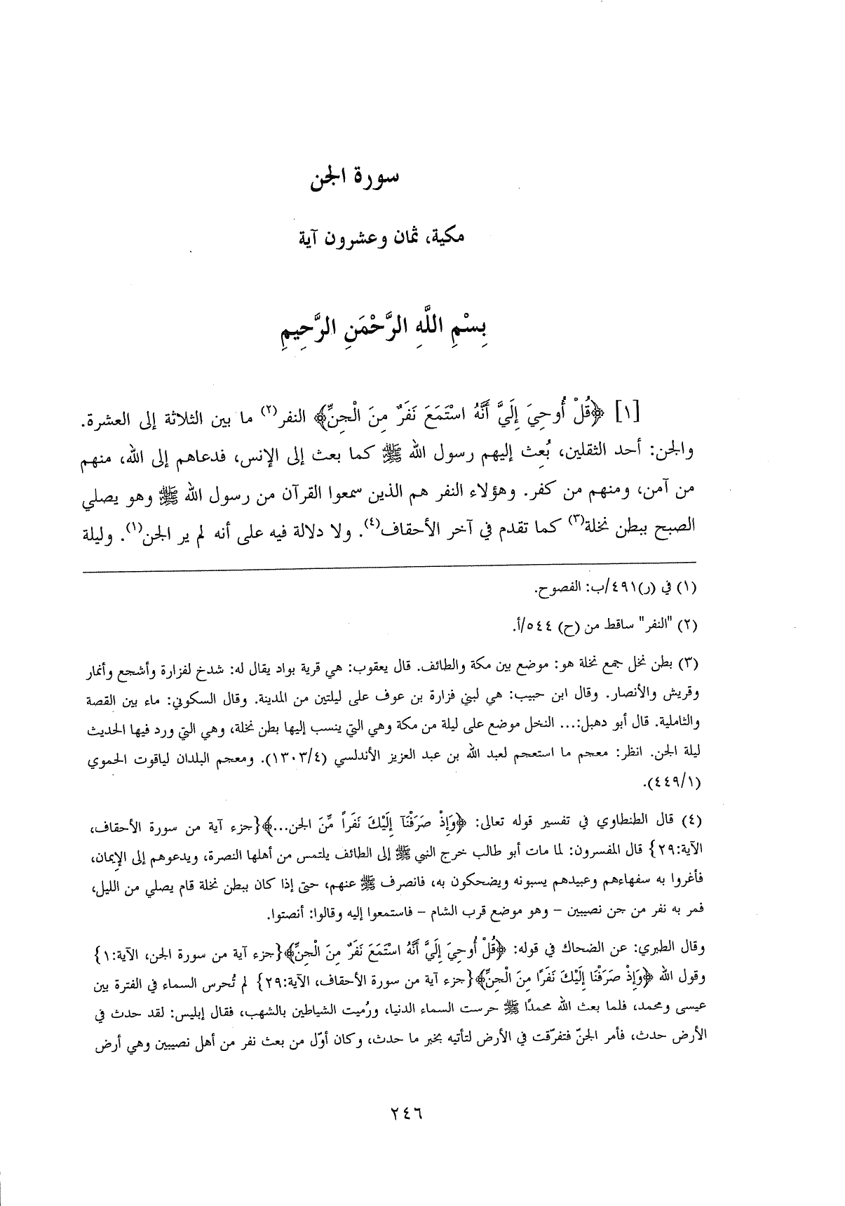 قُلْ أُوحِيَ إِلَيَّ أَنَّهُ اسْتَمَعَ نَفَرٌ مِنَ الْجِنِّ ... (1) النفر ما بين الثلاثة إلى العشرة.