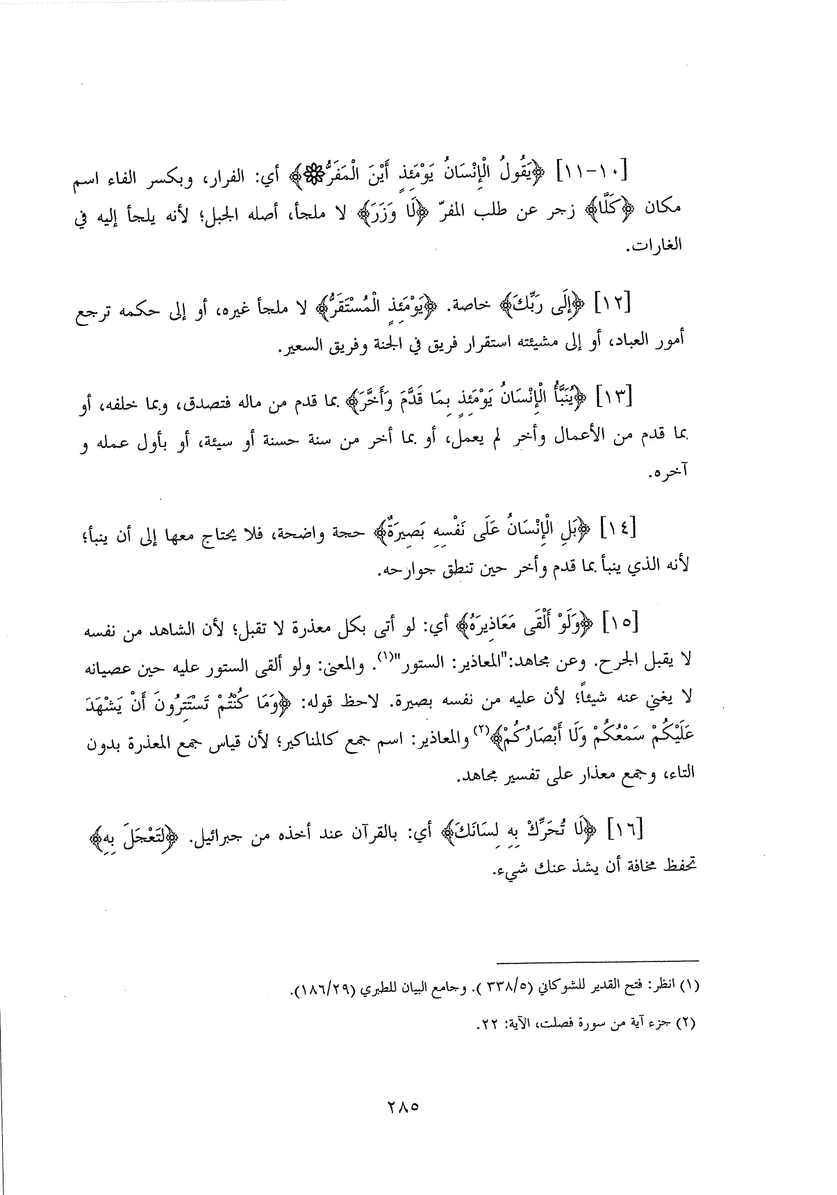 (يَقُولُ الْإِنْسَانُ يَوْمَئِذٍ أَيْنَ الْمَفَرُّ (10) أي: الفرار، وبكسر الفاء اسم مكان (كَلَّا ... (11) زجر عن طلب المفرِّ (لَا وَزَرَ) لا ملجأ، أصله الجبل؛ لأنه يلجأ إليه في الغارات.