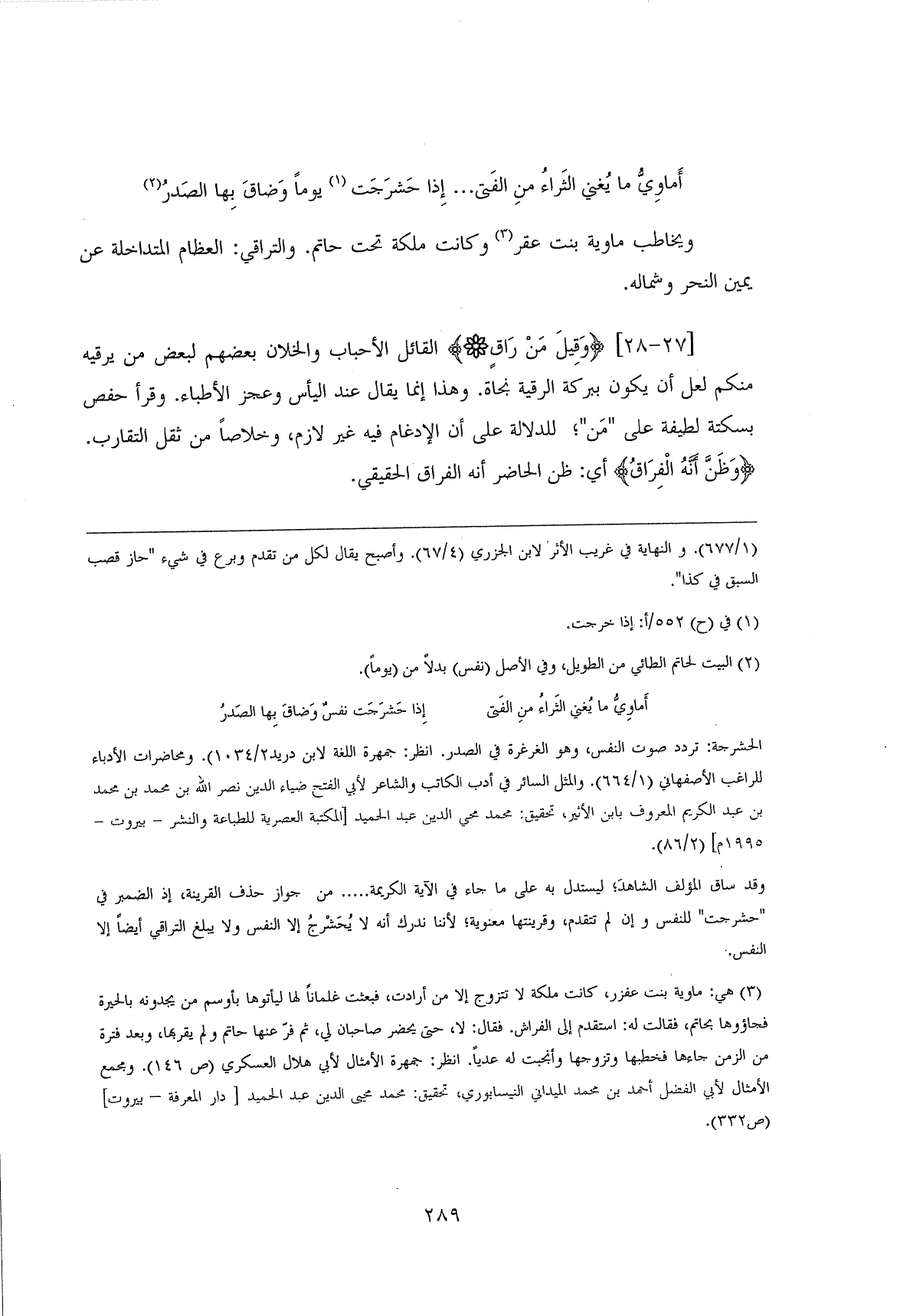 أَماوِيُّ ما يُغني الثَّراءُ منِ الفَتى ... إِذا حشرَجَت يوماً وَضاقَ بِها الصَّدرُ