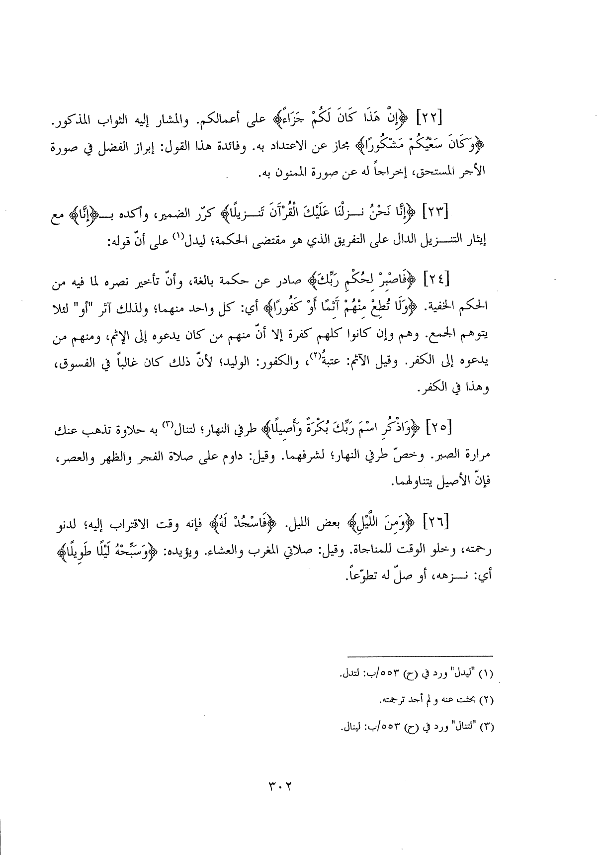 (إِنَّا نَحْنُ نَزَّلْنَا عَلَيْكَ الْقُرْآنَ تَنْزِيلًا (23) كرِّر الضمير، وأكده بـ (إنَّا) مع إيثار التنزيل الدال على التفريق الذي هو مقتضى الحكمة؛ ليدل على أنَّ قوله: