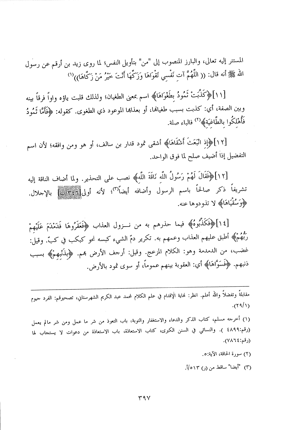 (إِذِ انْبَعَثَ أَشْقَاهَا (12) أشقى ثمود قدار بن سالف، أو هو ومن وافقه؛ لأن اسم التفضيل إذا أضيف صلح لما فوق الواحد.