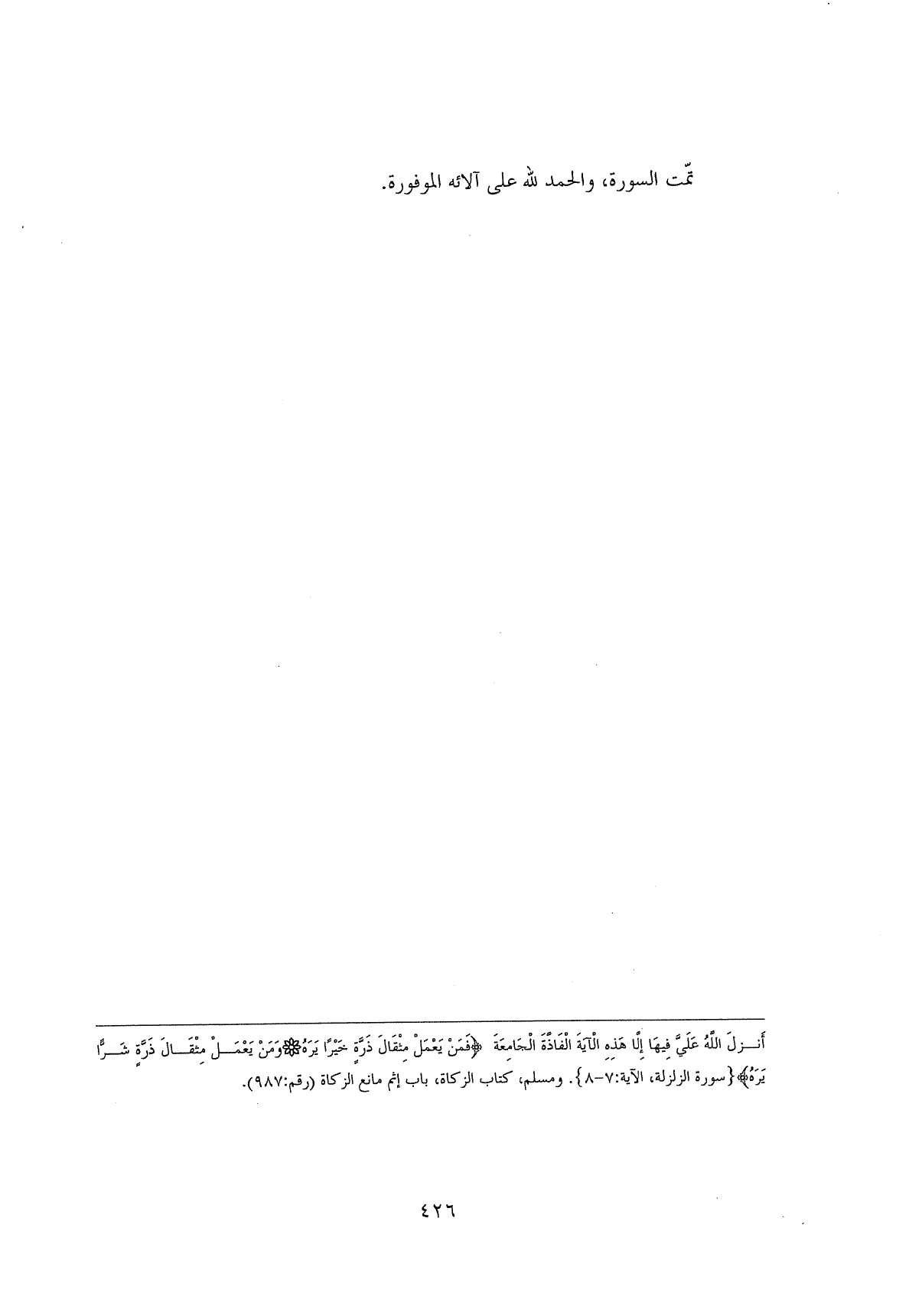 تمّت السورة، والحمد للَّه على آلائه الموفورة.