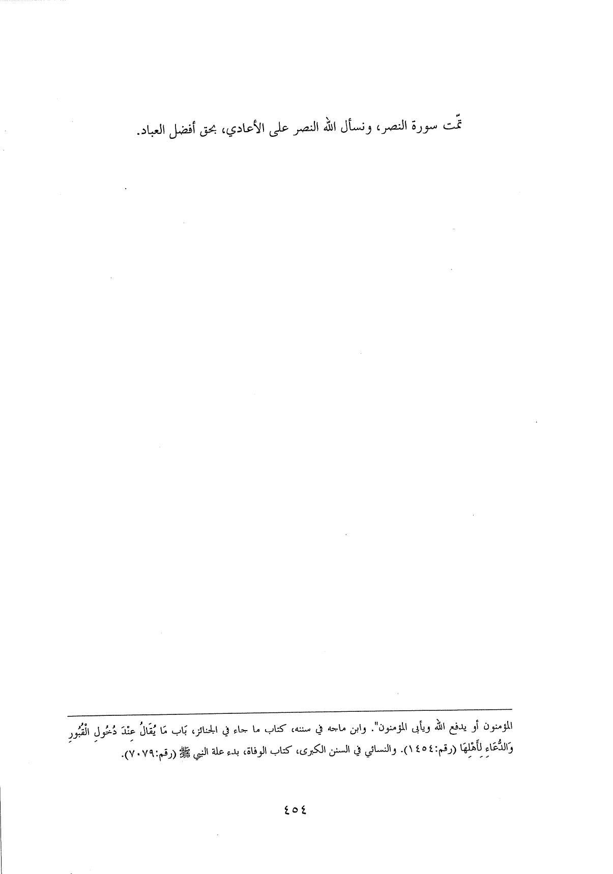 تمت سورة النصر، ونسأل اللَّه النصر على الأعادي، بحق أفضل العباد.