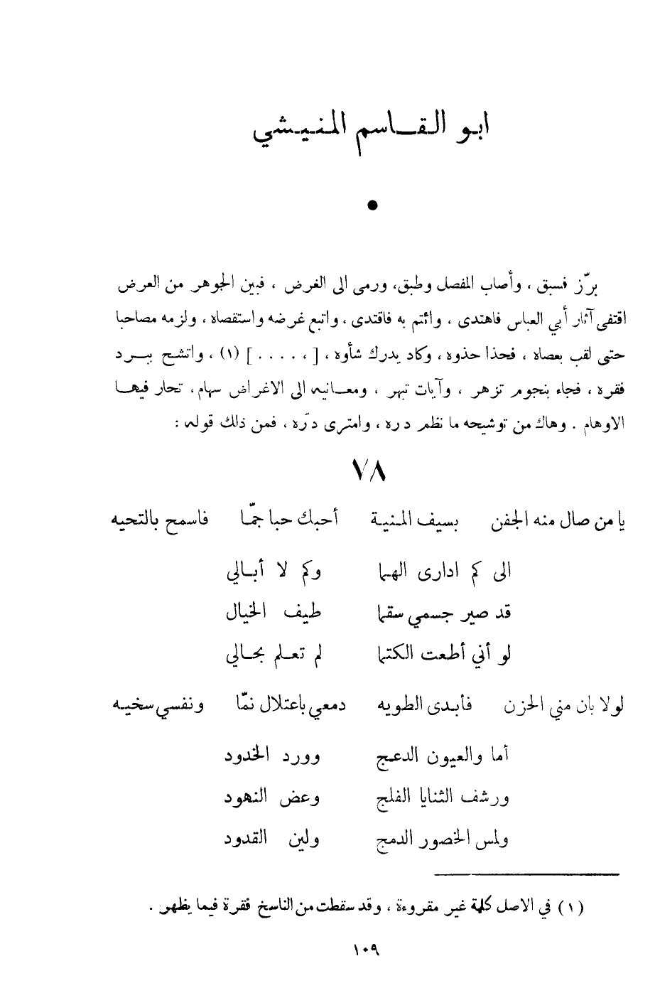 يا من صال منه الجفن بسيف المنية ... أحبك حبا جمّا فاسمح بالتحيه