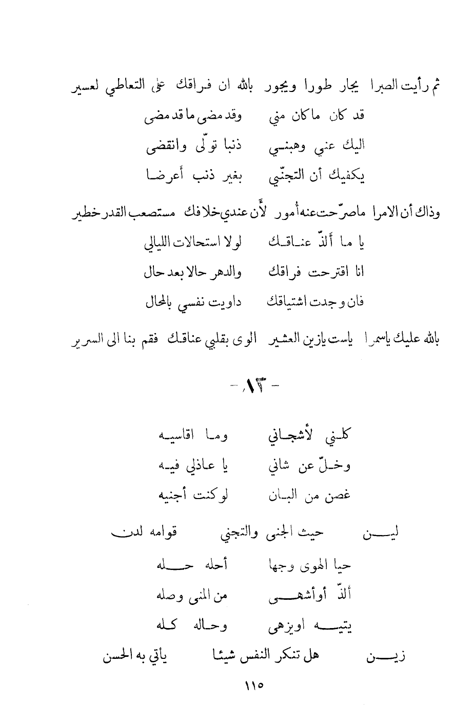 بالله عليك يا سمرا يا ست يا زين العشير ... ألوي قلبي عناقك فقم بنا إلى السرير
