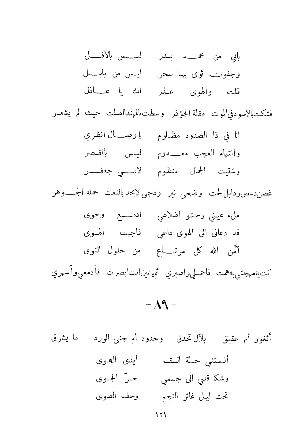 غصن دعص ذابل لحت وضحى نير ... ودجى لا يحد بالنعت حمله الجوهر