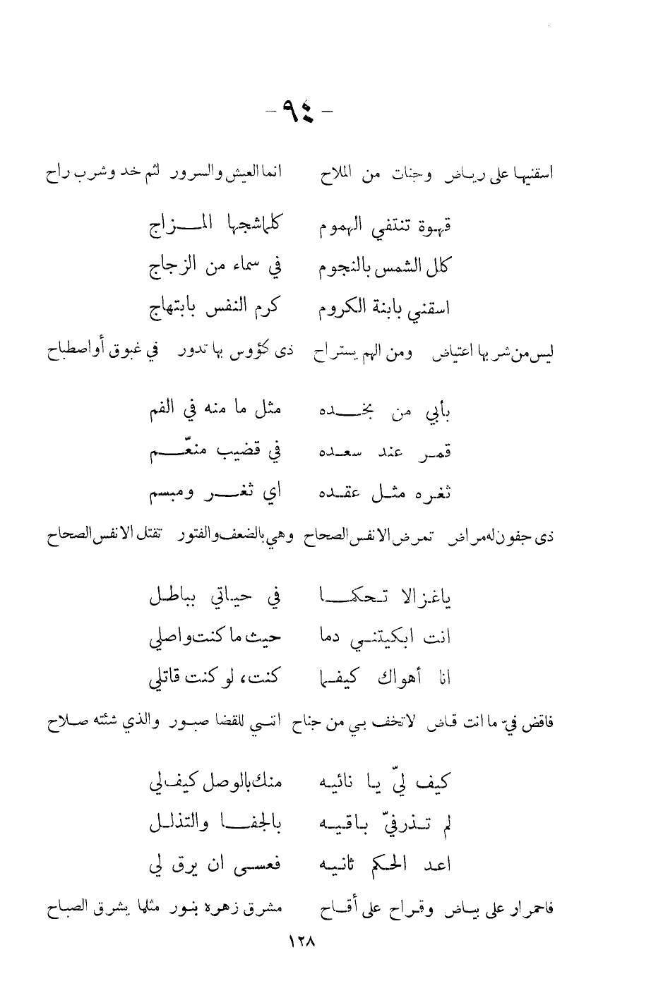 ليس من شربها اعتياض ومن الهم يستراح ... ذي كؤوس بها تدور=في غبوق أو