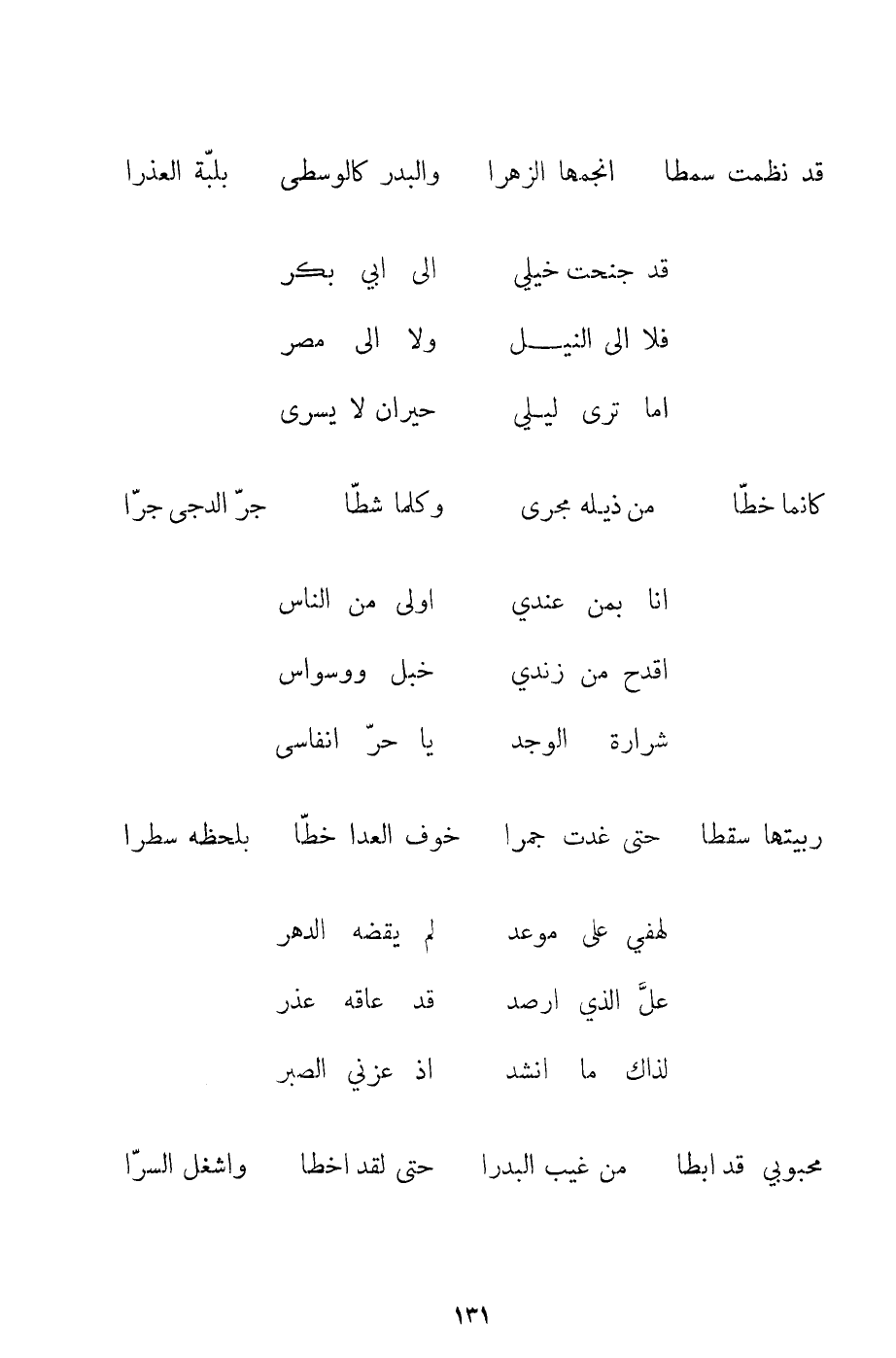 محبوبي قد أبطأ من غيب البدرا ... حتى لقد أخطا وأشغل السرّا