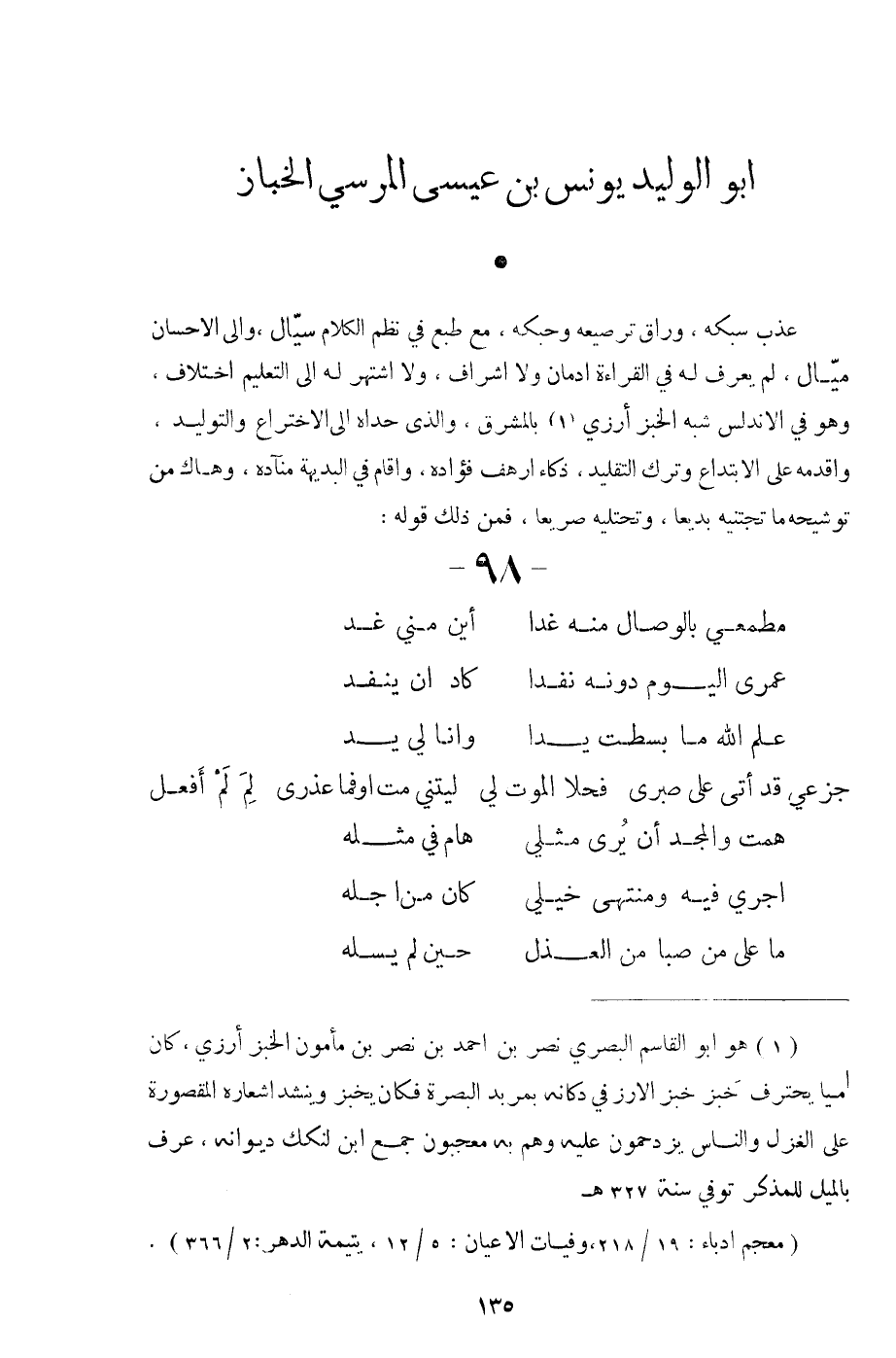 عذب سبكه، وراق ترصيعه وحبكه، مع طبع في نظم الكلام سيال، وإلى الإحسان ميال، لم يعرف له في القراءة إدمان ولا إشراف، ولا اشتهر له إلى التعليم اختلاف، وأقدمه على الابتداع وترك التقليد، ذكاء أرهف فؤاده، وأقام في البديهة منآده، وهاك من توشيحه ما تجتنبه بديعا، وتحتليه صريعا، فمن ذلك قوله: