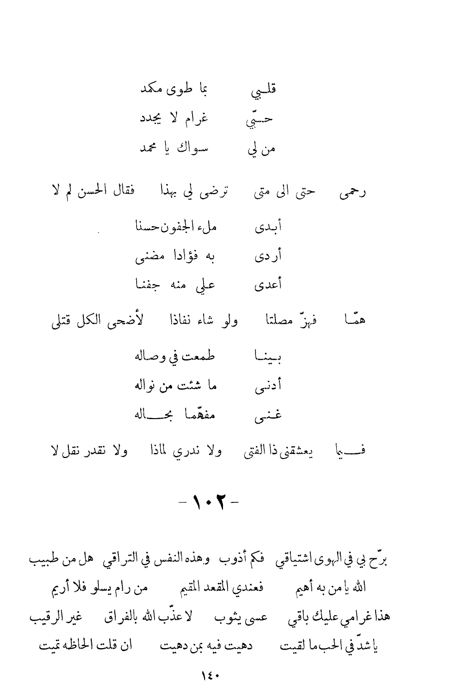 الله يا من به أهيم ... فعندي المقعد المقيم من رام يسلو فلا أريم