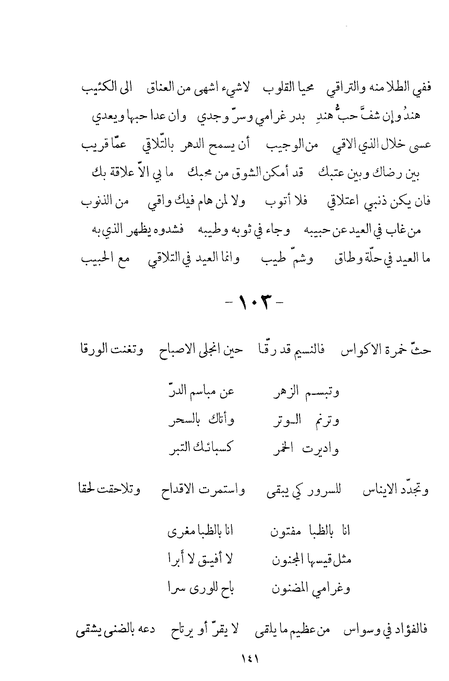 هندُ وإن شفَّ حبُّ هِند ... بدر غرامي وسرّ وجدي وأن عدا حبها ويعدي