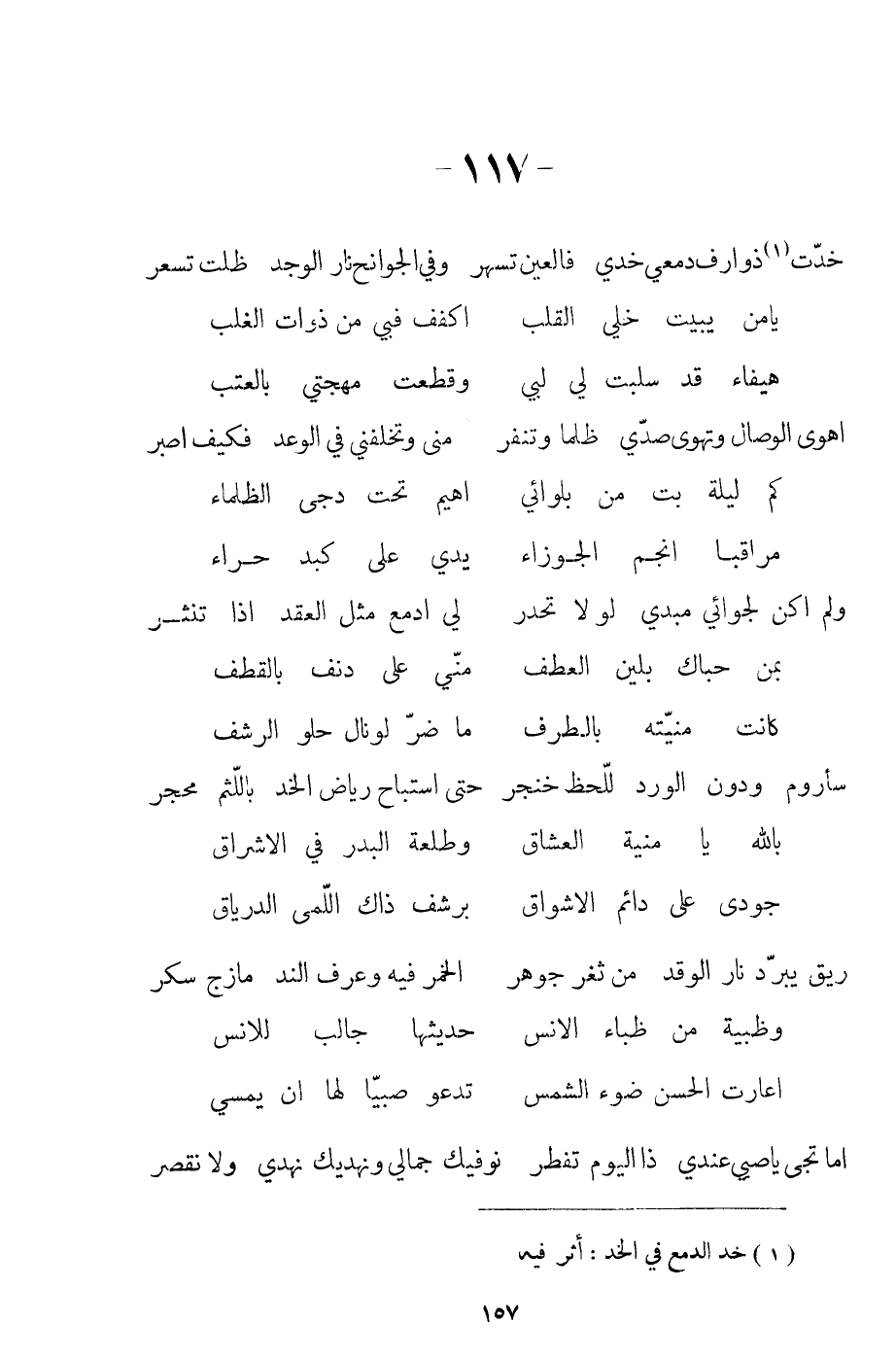 خدّت ذوارف دمعي خدي فالعين تسهر ... وفي الجوانح نار الوجد ظلت تسعر