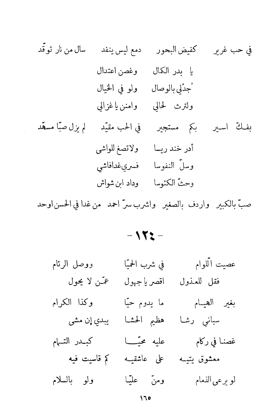 صبّ بالكبير وأردف بالصغير ... وأشرب سرّ أحمد من غدا في الحسن أوحد