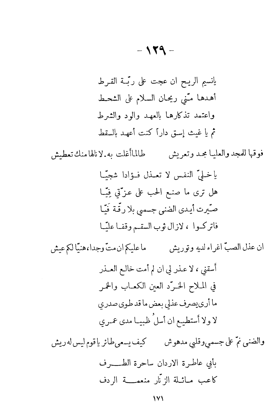 أن عذل الصبّ أغراء لديه وتوريش ... ما عليكم أن متّ وجدا، هنيّا لكم عيش
