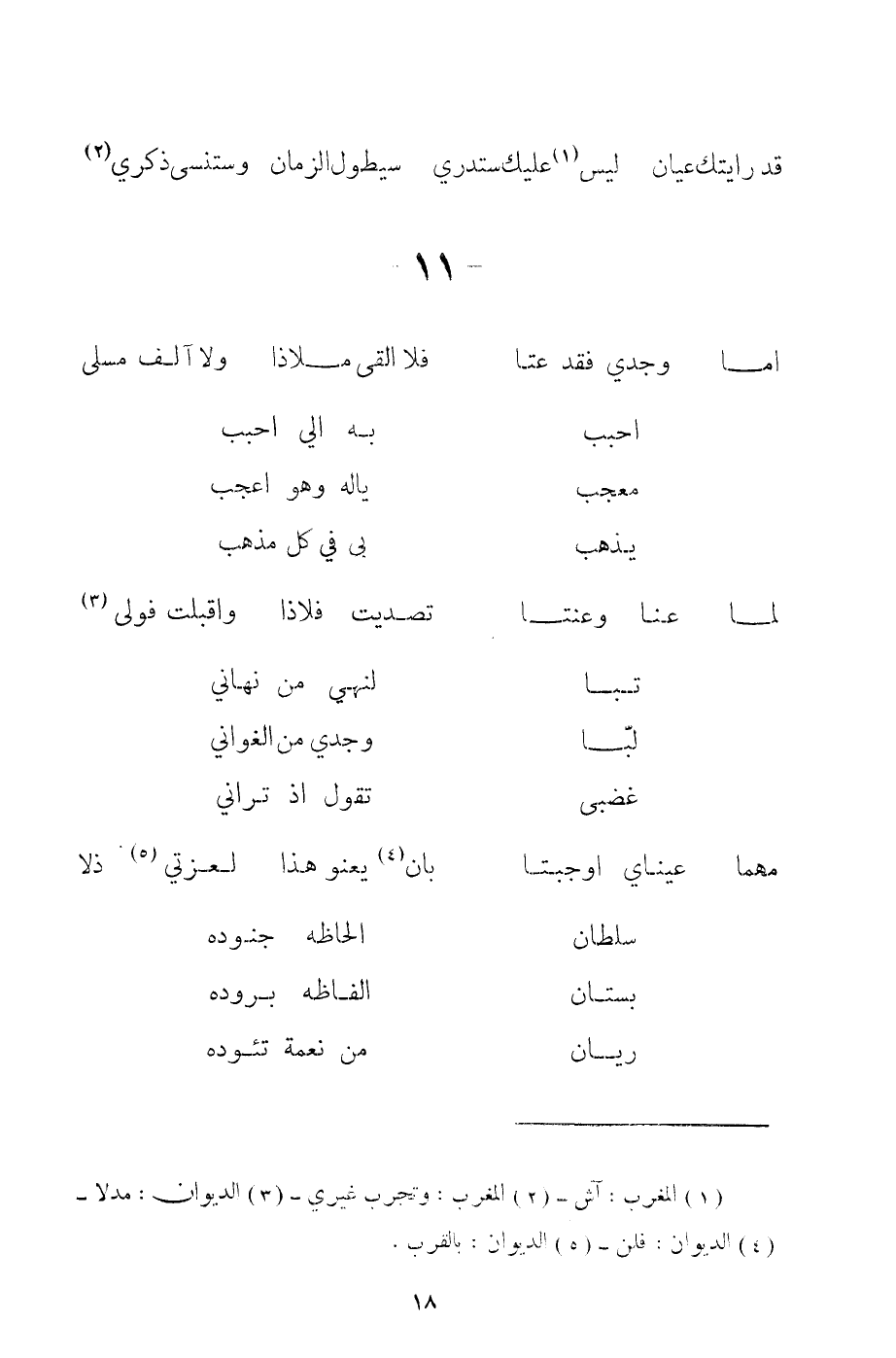 أما وجدي فقد عتا ... فلا ألقى ملاذا ولا آلف مسلي