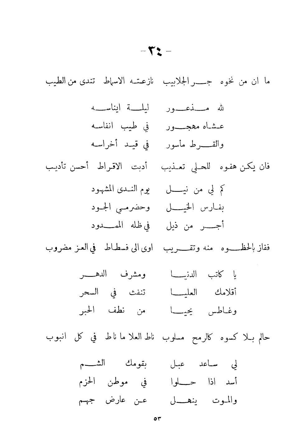 ما أنا من نخوه جر الجلابيب ... نازعته الأسماط تندى من الطيب