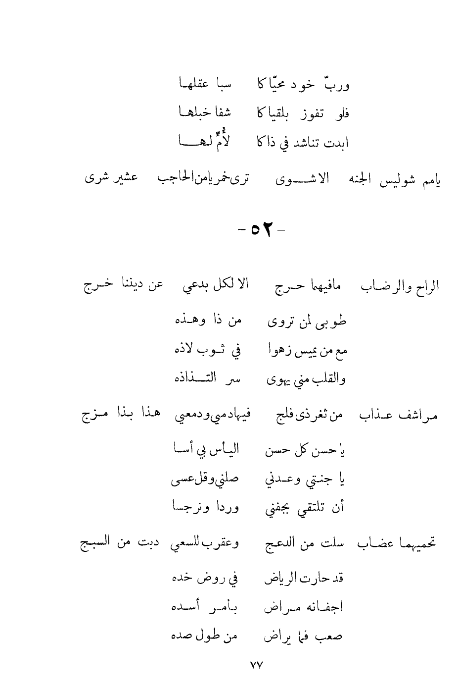 يامم شوليس الجنه الأشوى ... ترى خمريا من الحاجب عشير شرى