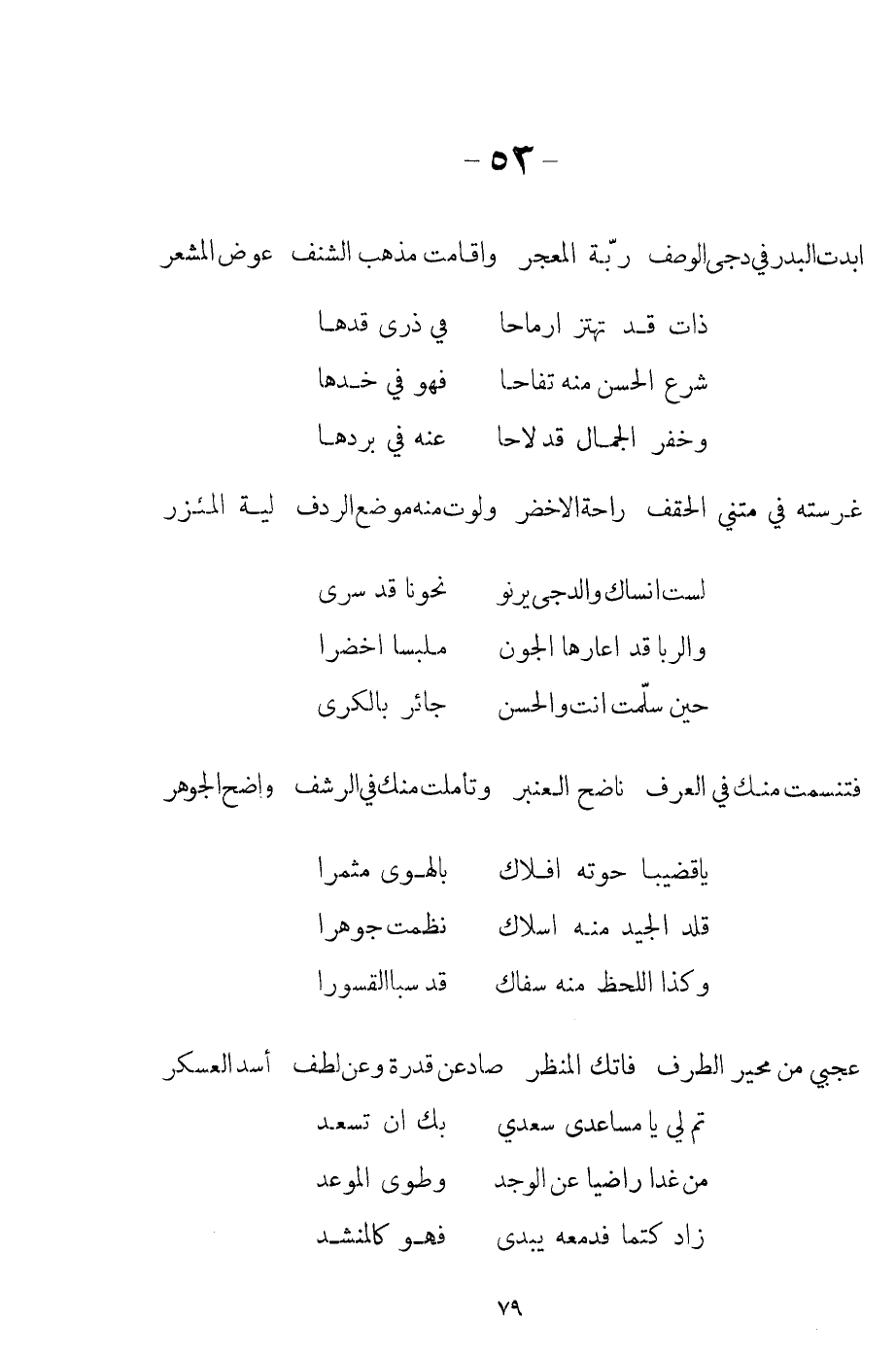 أبدت البدر في دجى الوصف ربّة المعجر ... وأقامت مذهب الشنف عوض المشعر