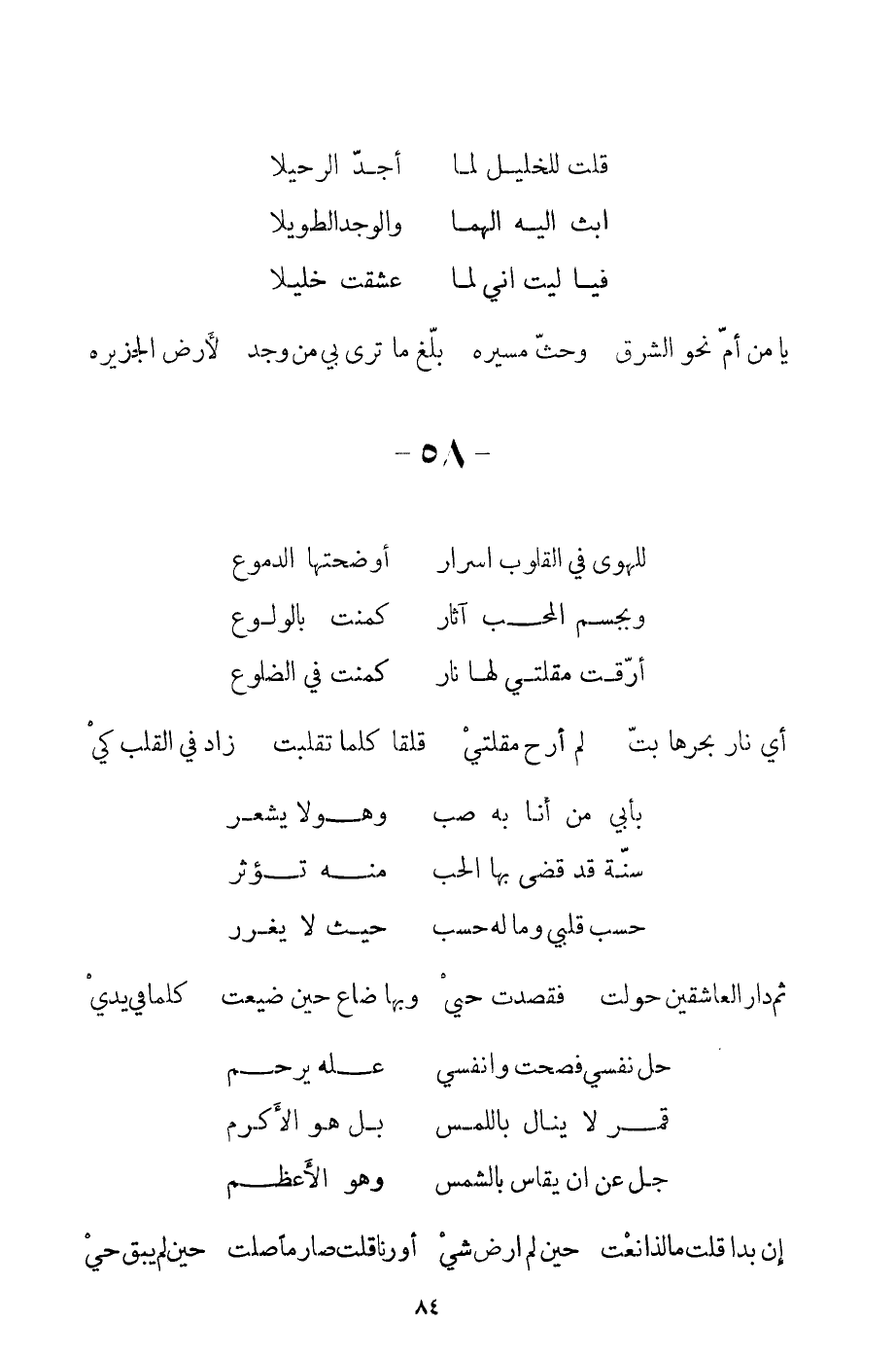 يا من أمّ نحو الشرق وحثّ مسيره ... بلّغ ما ترى بي من وجد لأرض الجزيره