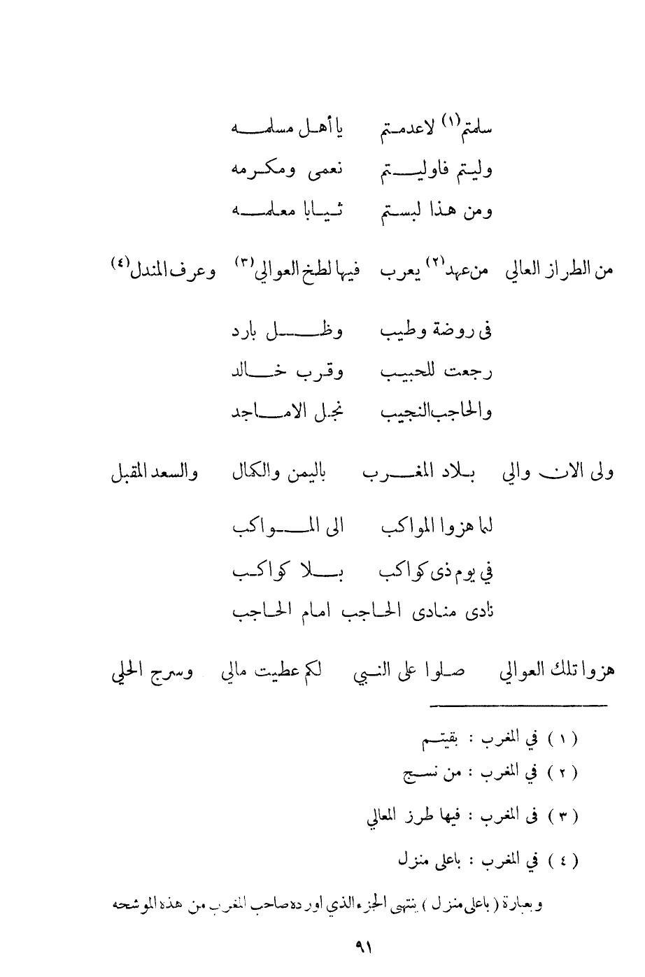 ولى الآن والي بلاد المغرب ... باليمن والكمال والسعد المقبل