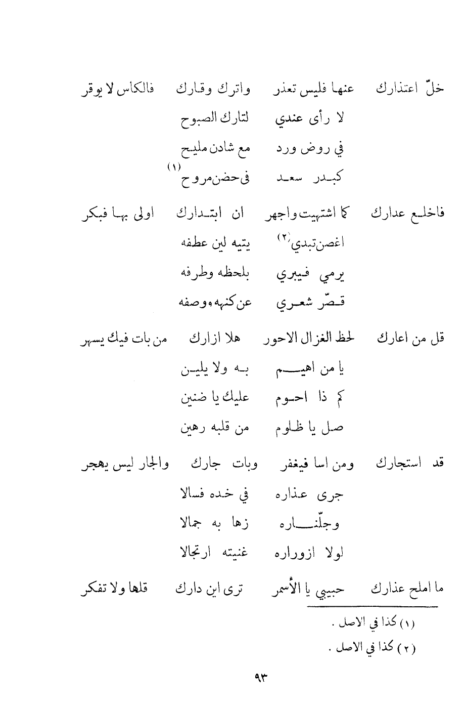قل من أعارك لحظ الغزال الأحور ... هلا أزارك من بات فيك يسهر