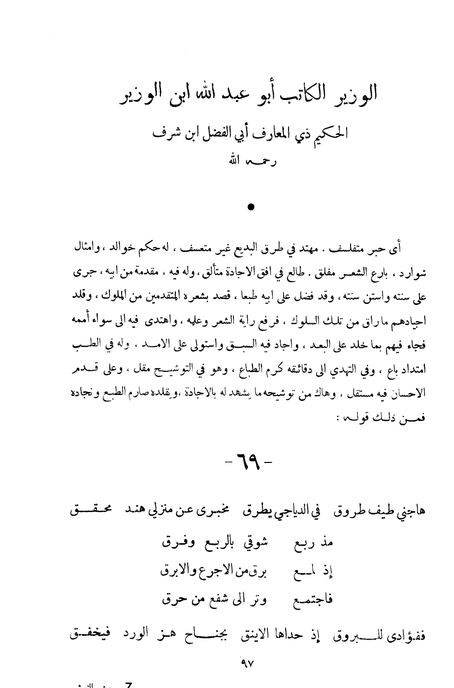 الحكيم ذي المعارف أبي الفضل ابن شرف