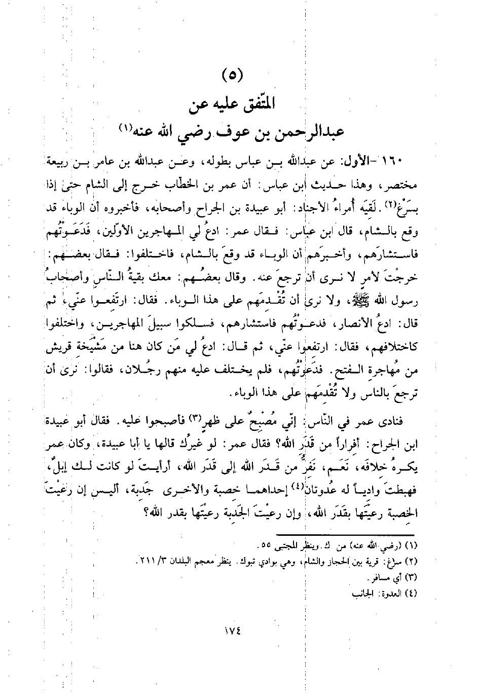 (5) الْمُتَّفق عَلَيْهِ عَن عبد الرَّحْمَن بن عَوْف رَضِي الله عَنهُ