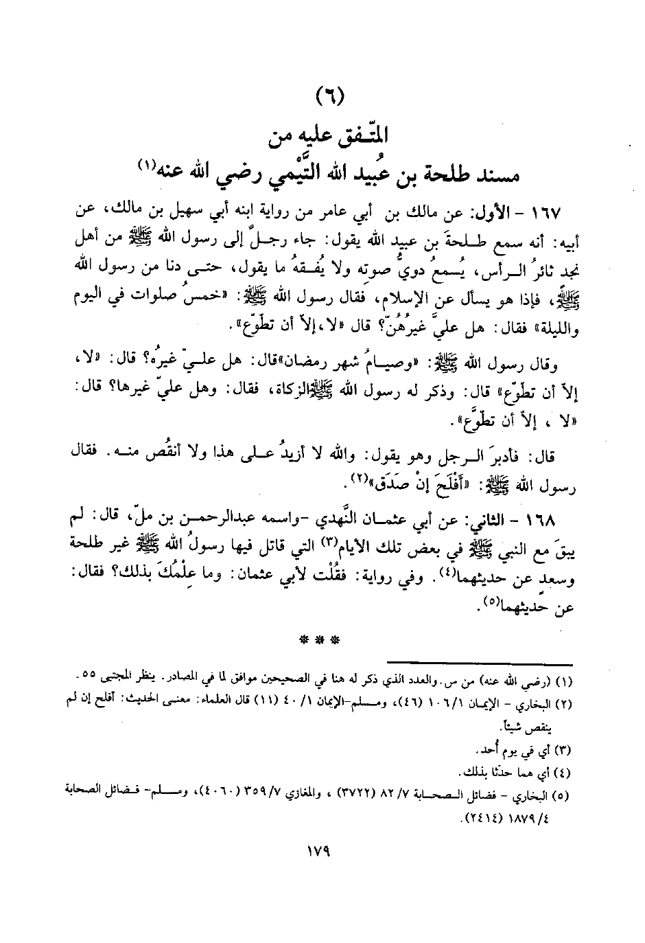 (6) الْمُتَّفق عَلَيْهِ من مُسْند طَلْحَة بن عبيد الله التَّيْمِيّ رَضِي الله عَنهُ